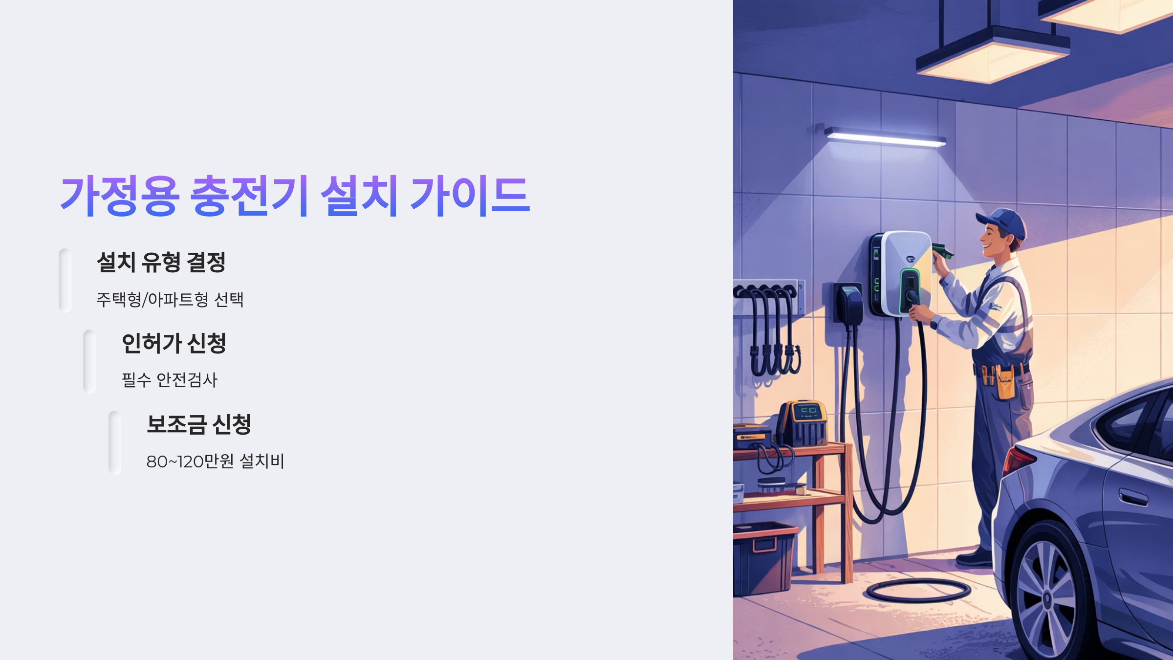 이 세 가지를 잘 챙기면 편리하고 경제적으로 충전기를 설치할 수 있어요. 충전 스트레스 없는 생활, 누구나 가능해요! 🚗