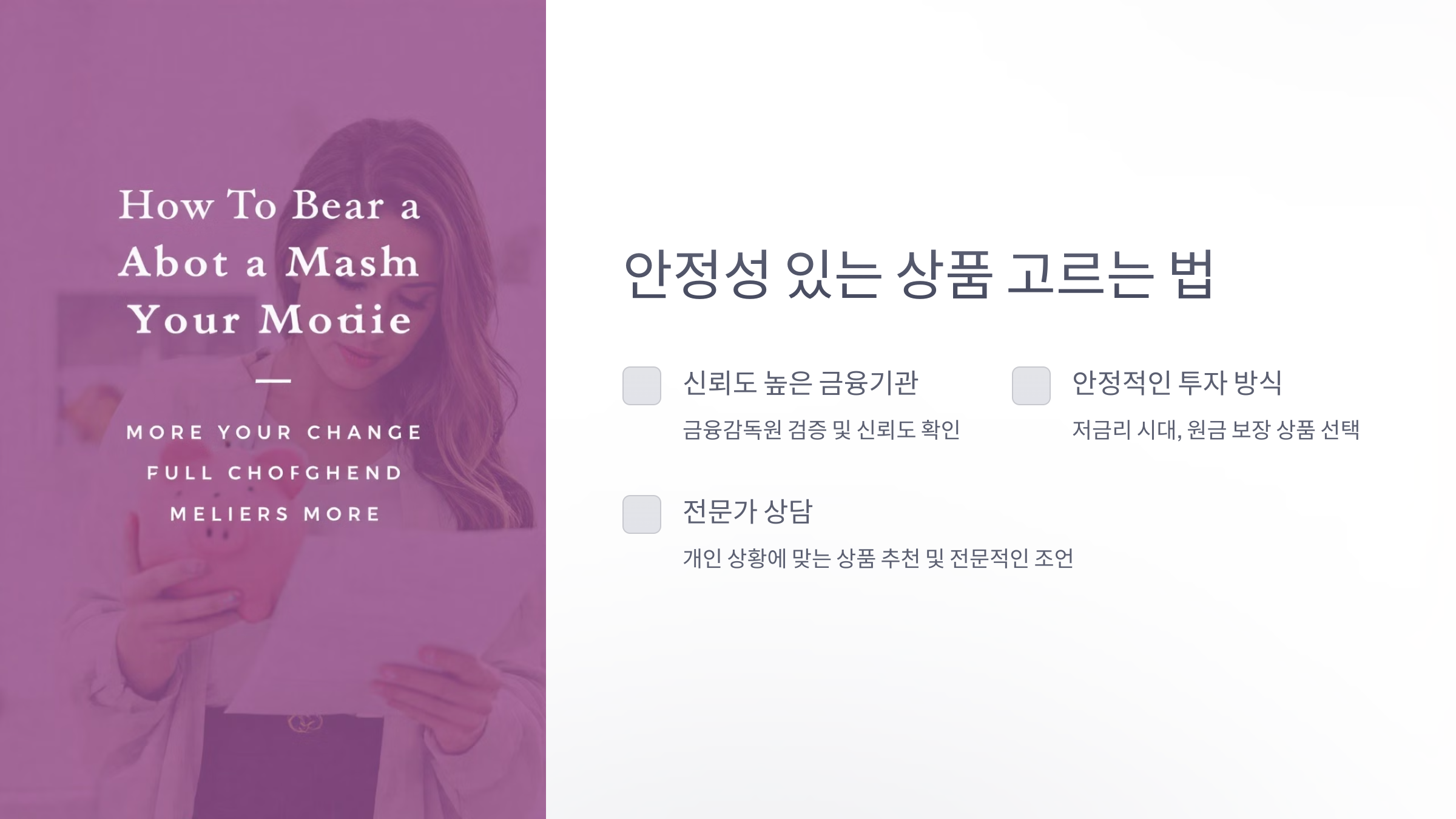 A4. 원금 보장형은 안정성을, 투자형은 높은 수익성을 제공합니다. 본인의 투자 성향과 목표에 따라 선택하세요.