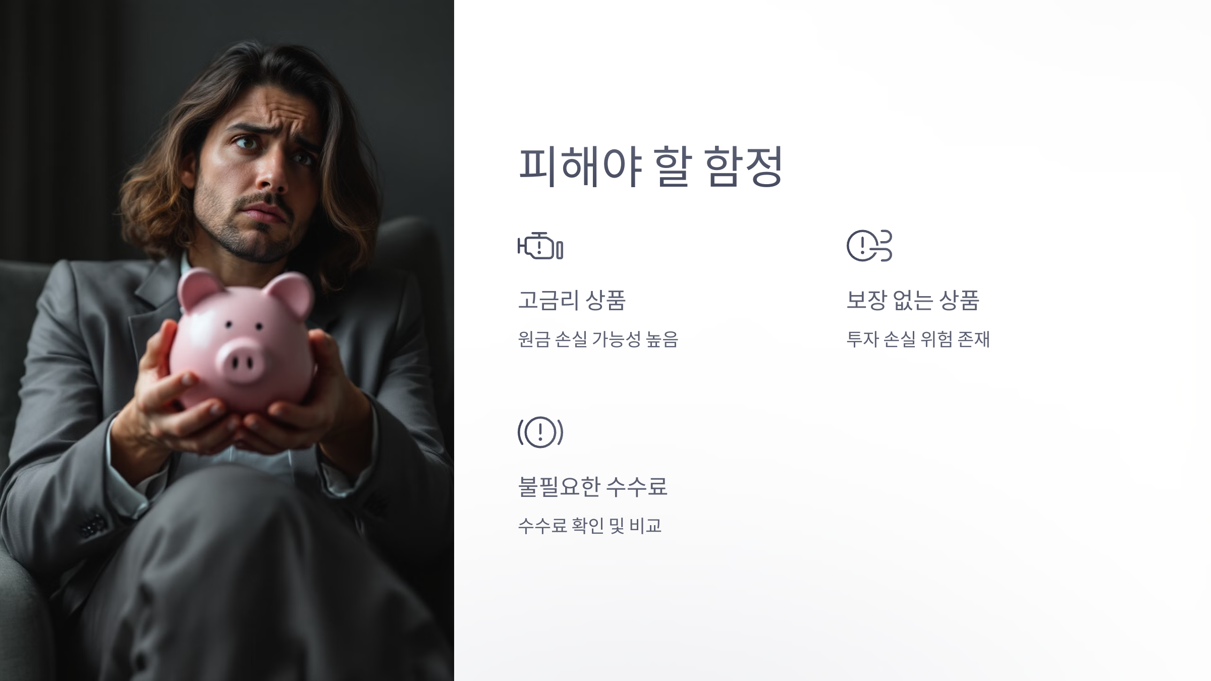 2. 고위험 상품에 올인: 수익을 극대화하려는 욕심에 고위험 펀드에 과도하게 투자하는 것은 위험해요. 분산 투자가 중요해요.