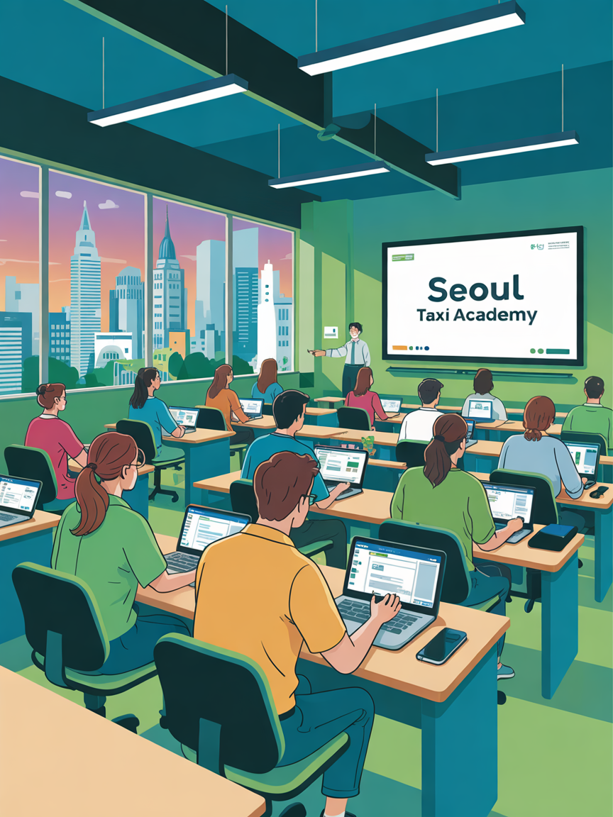 셋째 날은 서비스 교육과 매출 관리법이에요. 친절한 고객 응대, 승객 불만 처리 방법, 요금 미터기 정산까지 실제 택시 영업에서 바로 쓸 수 있는 실무 중심 수업이 이뤄져요.