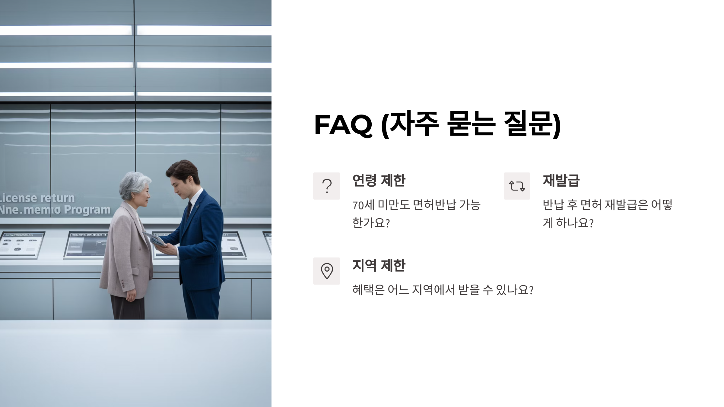 현재는 자발적인 반납이 중심이에요. 강제성보다는 인센티브를 제공해 반납을 유도하는 형태인데, 여기에 다양한 혜택이 붙으면서 고령층의 참여가 꽤 늘어나고 있어요.