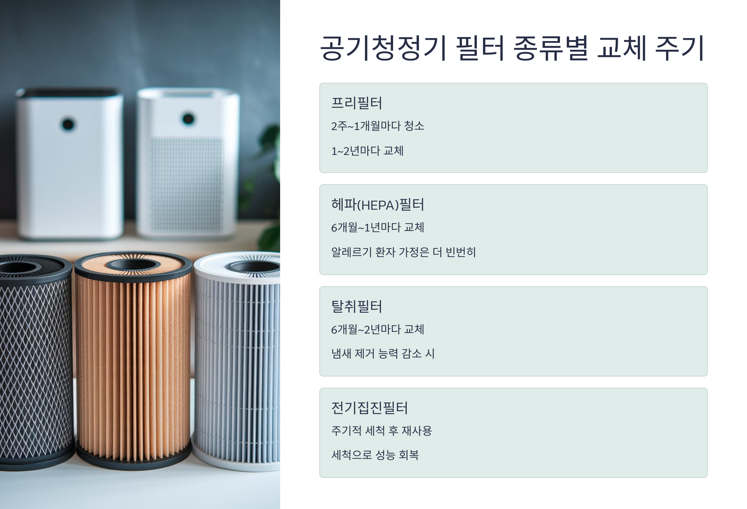 | 필터 종류 | 주요 역할 | 교체 or 청소 주기 |