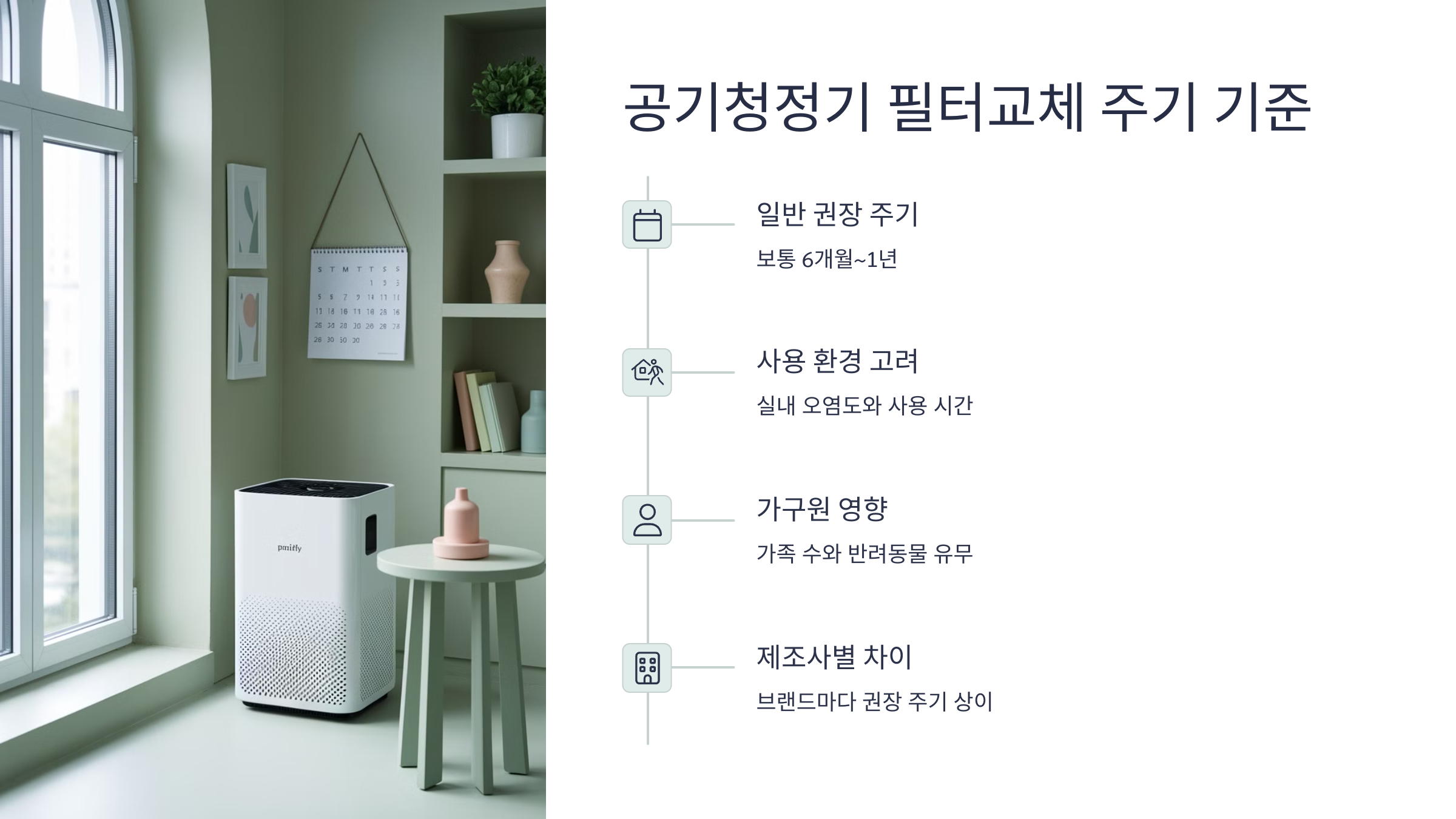 | 필터 종류 | 권장 교체 주기 | 환경 조건 |