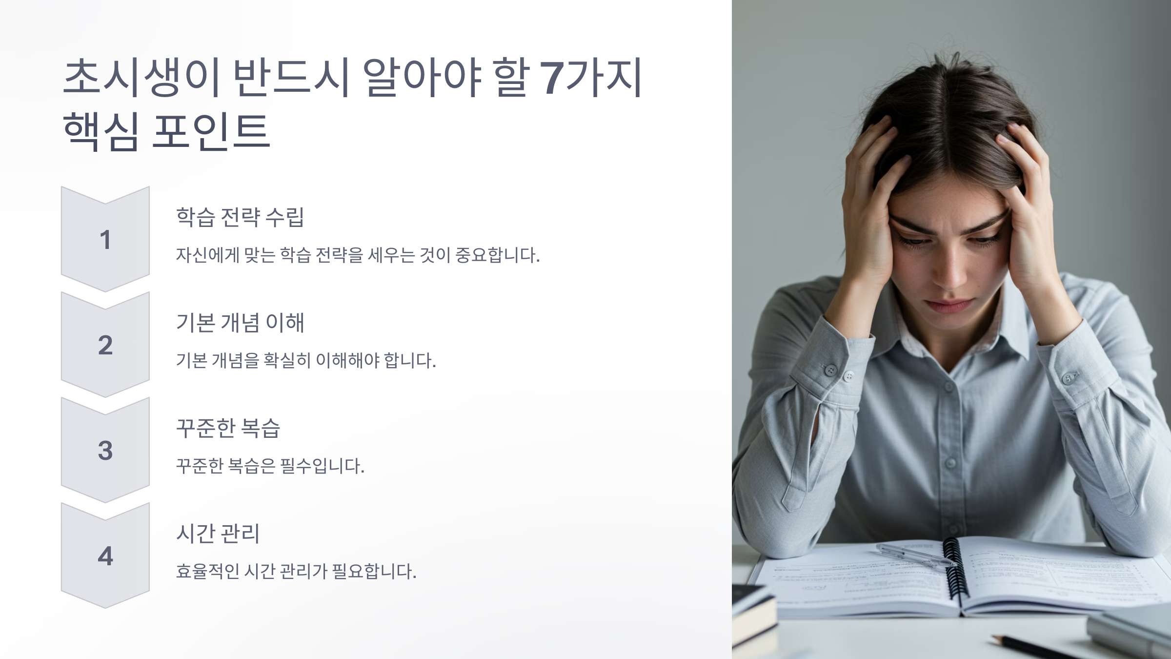 초시생들이 위와 같은 실수를 피하려면, 기출문제 풀이와 실전 연습을 철저히 해야 해요. 전략적인 공부 계획이 필요하죠!