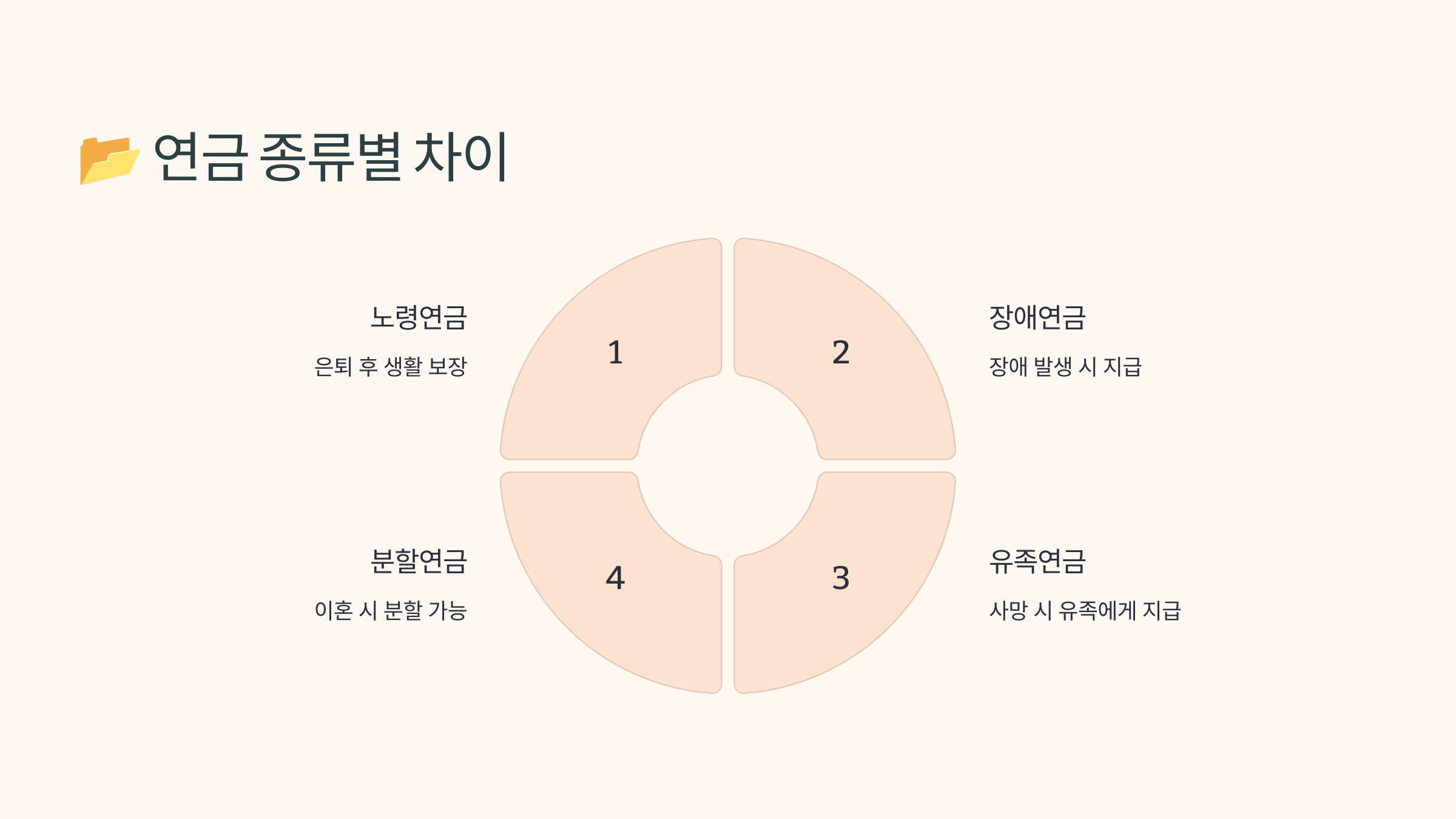 유족연금은 크게 3가지 형태로 구분돼요: 기본형 유족연금, 보통 유족연금, 특례 유족연금이에요. 각각 수급 조건과 지급 대상이 다르기 때문에 구분해서 알아야 해요.