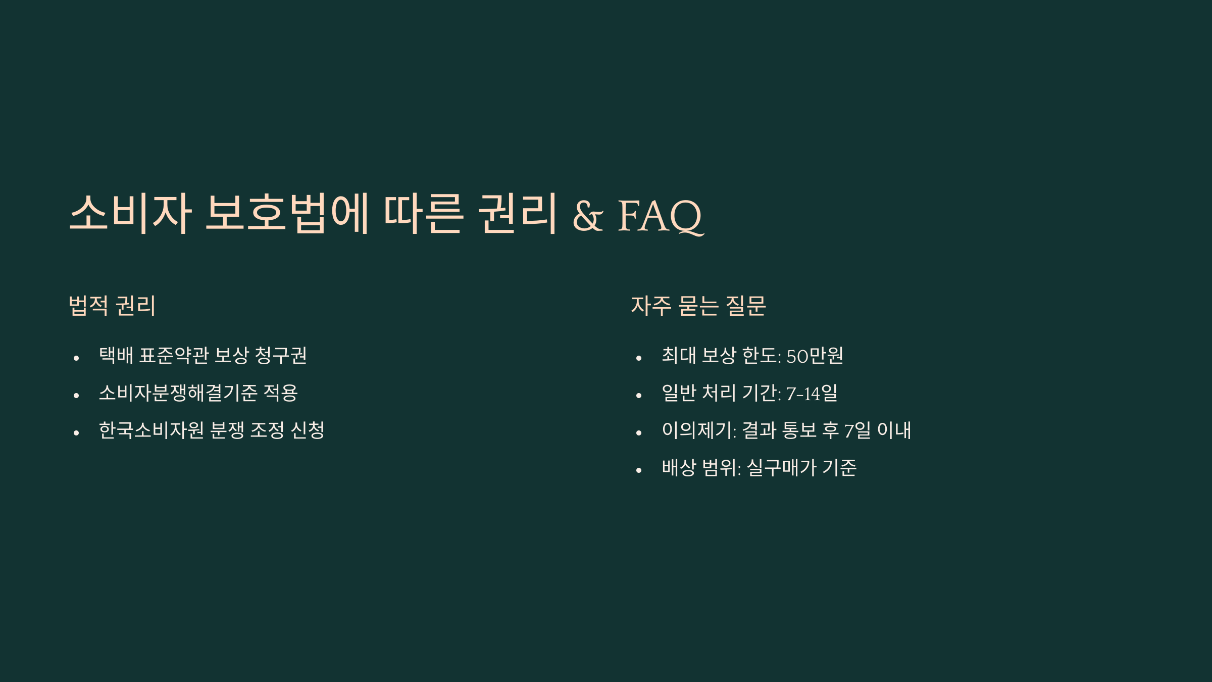 A7. 일반적으로 50만원 이내는 정상 보상되며, 고가품은 신고 후 택배보험 가입 시 전액 보상이 가능합니다.