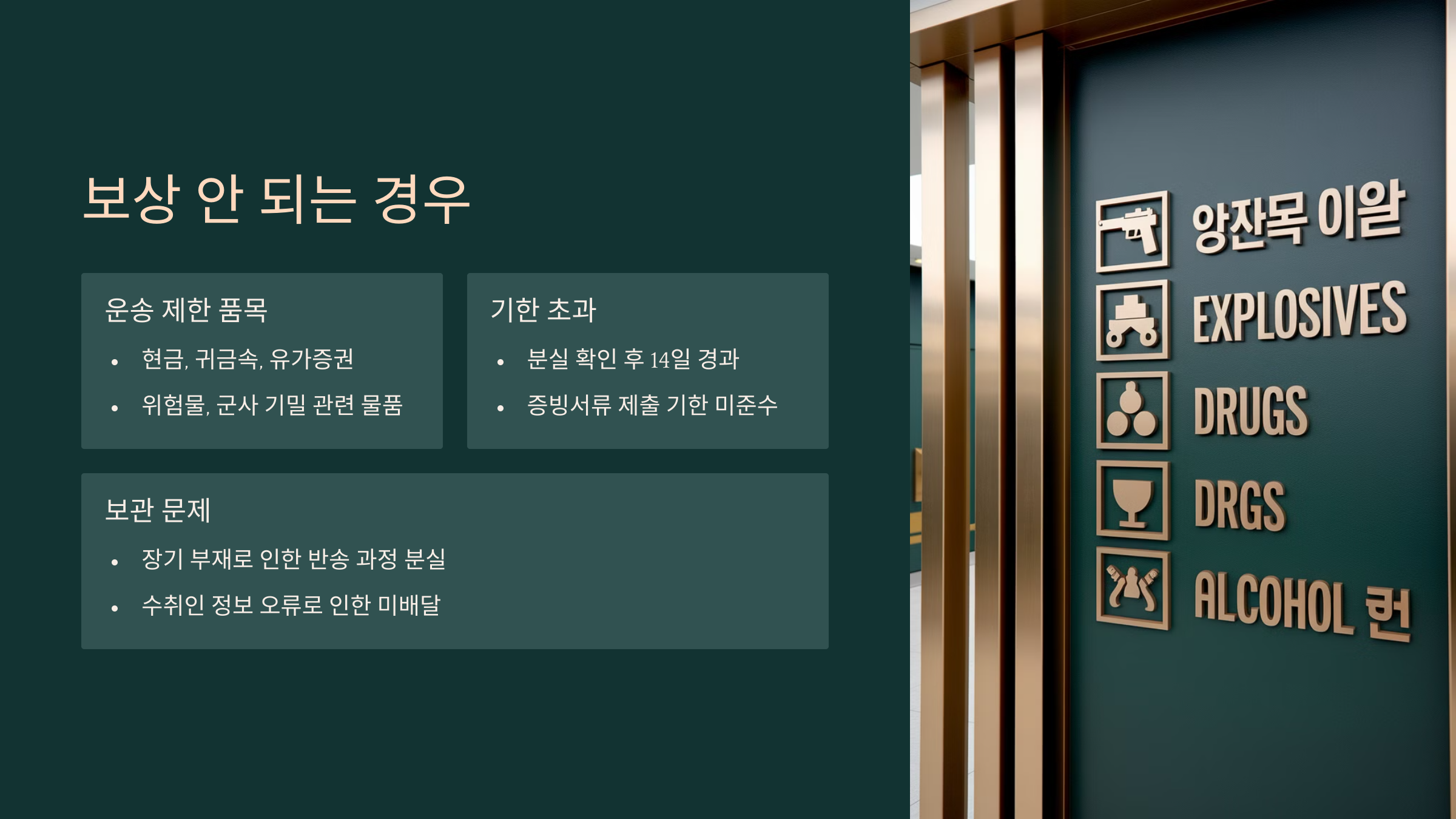 모든 분실이 다 보상되는 건 아니에요. 보상 제외 조건이 몇 가지 있어서 주의가 필요해요!