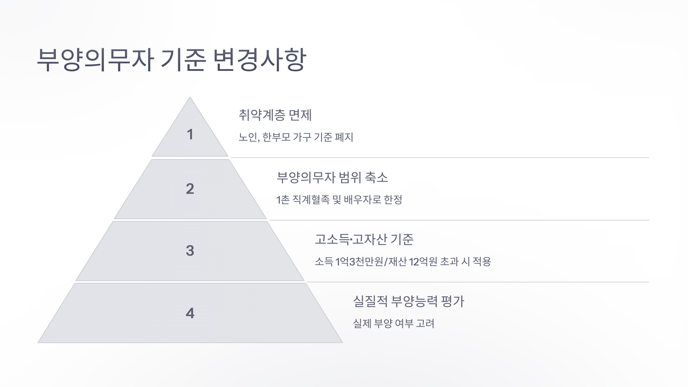 기초생활수급자 제도에서 부양의무자 기준은 오랫동안 논란이 되었어요. 원래는 부모나 자녀가 일정 소득 이상이면 생계급여를 받을 수 없었지만, 최근 몇 년 동안 완화되면서 점차 폐지되는 방향으로 가고 있어요.
