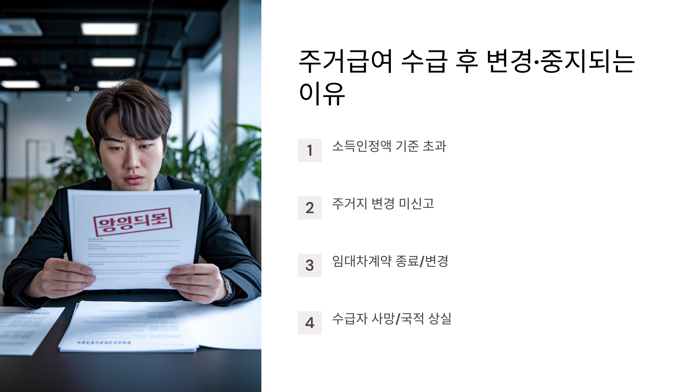 주거급여가 중지·변경되는 주요 사유를 정리했어요. 👇
