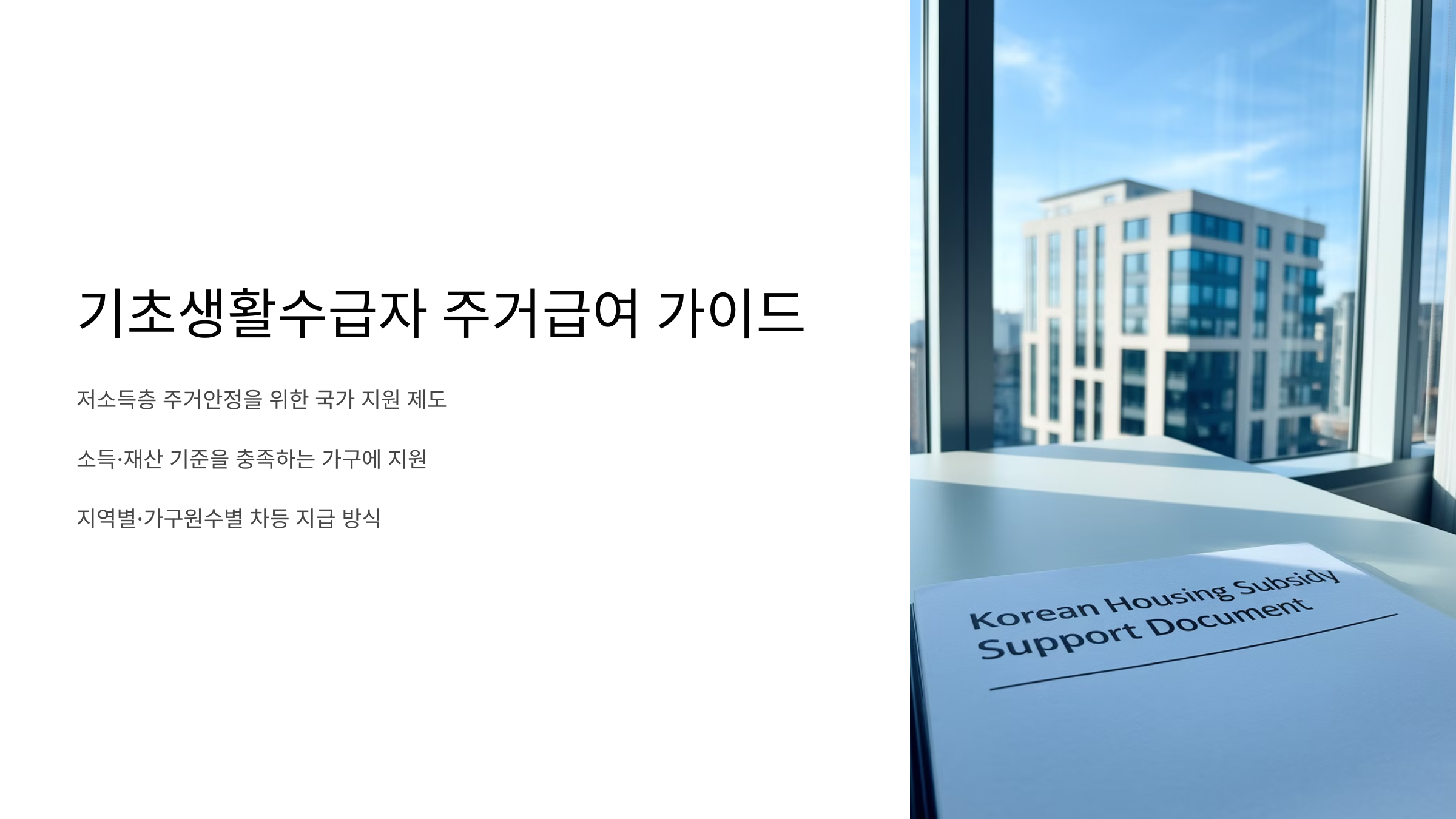 주거급여는 소득과 재산이 일정 기준 이하인 가구가 받을 수 있는 지원이에요. 기존에는 기초생활수급자 중에서도 일부만 받을 수 있었지만, 현재는 부양의무자 기준이 폐지되면서 더 많은 가구가 혜택을 받을 수 있어요! 🎉