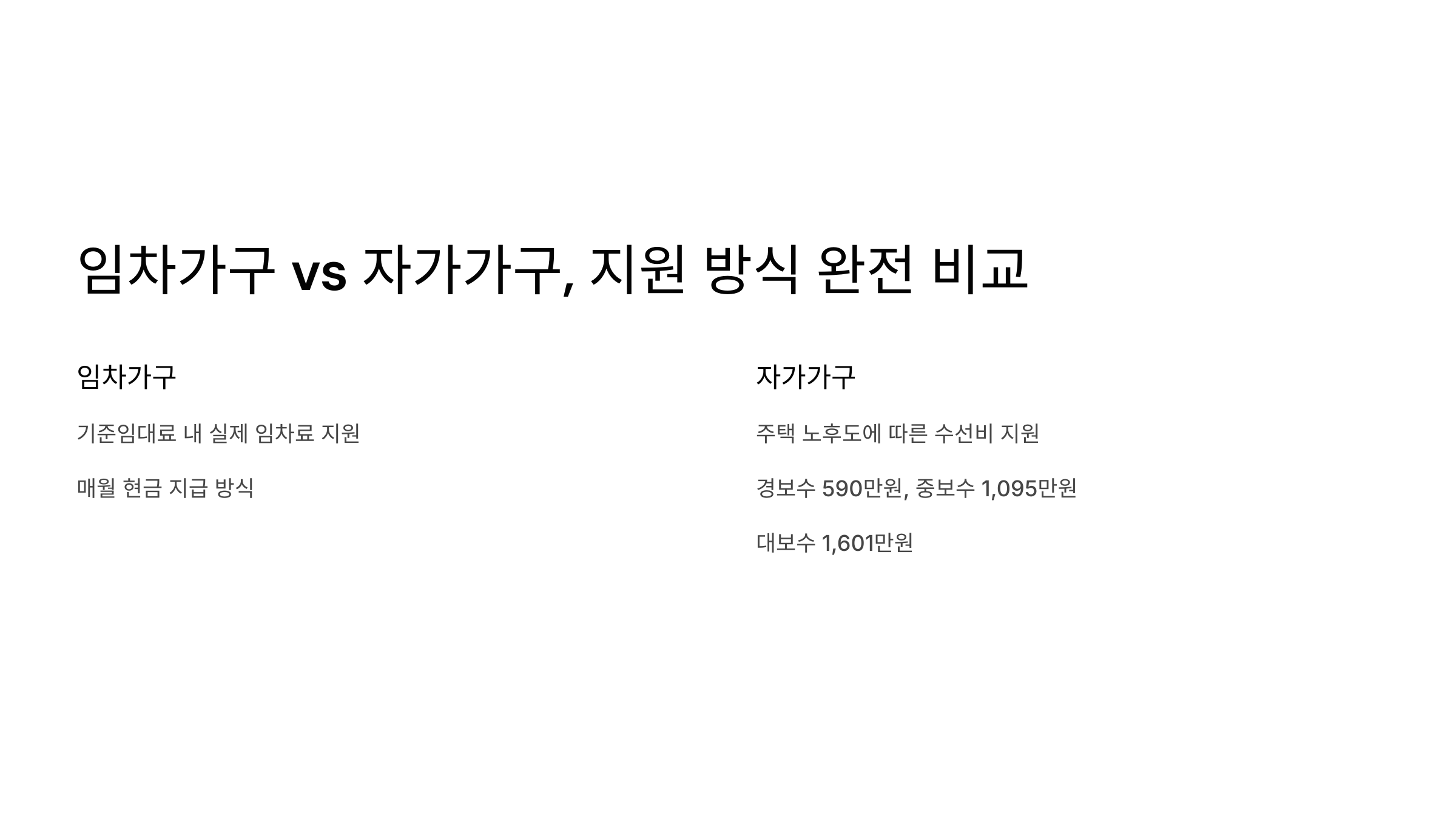 그렇다면 임차가구와 자가가구의 지원 방식은 어떻게 다를까요? 다음에서 자세히 비교해볼게요! ⬇