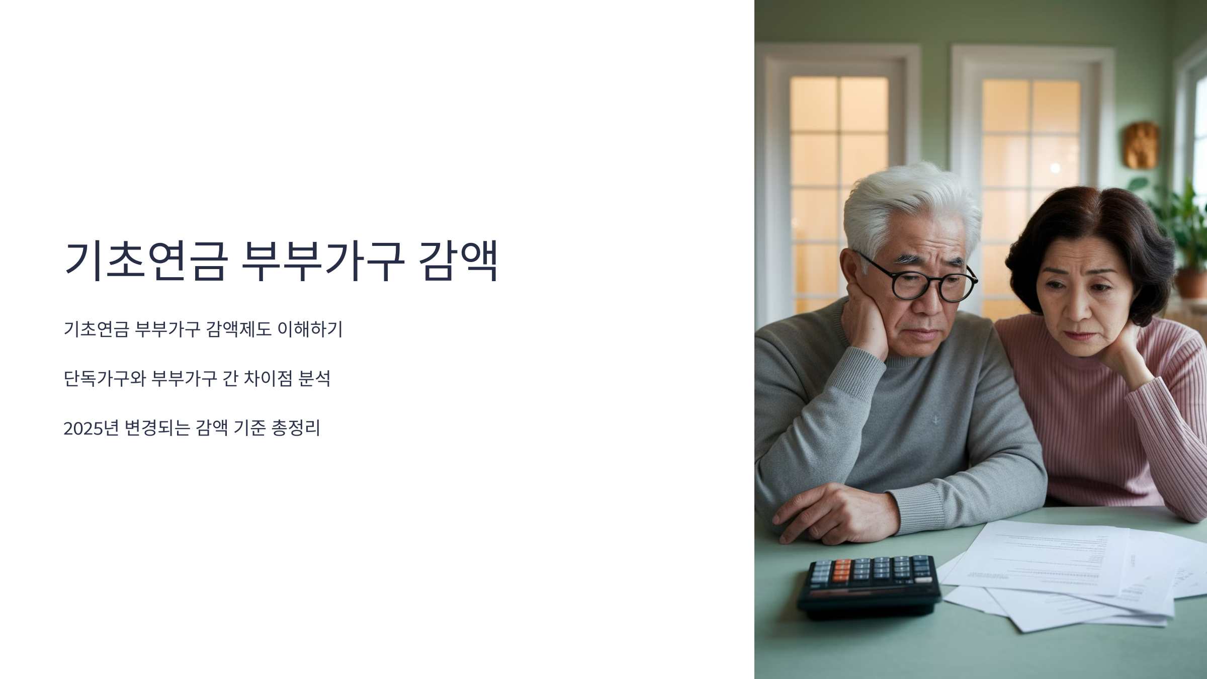2025년부터 기초연금 기준연금액이 인상되면서 부부가구 감액 금액도 달라지게 돼요. 부부가 모두 기초연금을 받을 경우 감액률이 적용되기 때문에 이를 정확히 알고 준비하는 것이 중요해요!