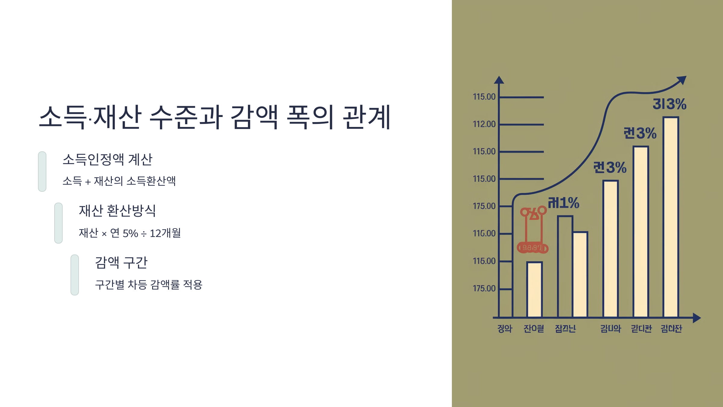✅ 소득·재산 수준에 따라 감액 폭이 달라진다?