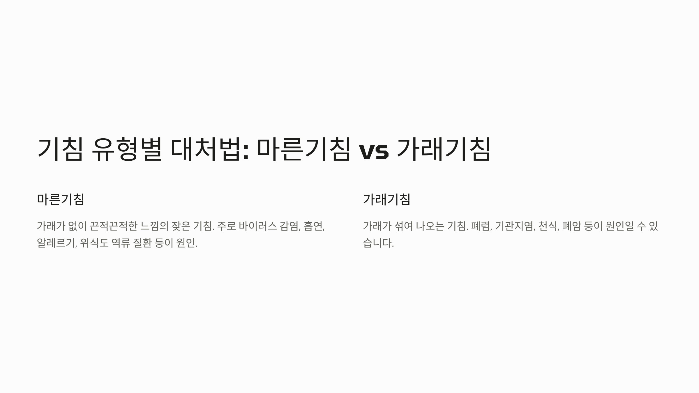 이제 **기침 유형별 대처법! 마른기침 vs 가래기침 차이**를 알아볼까요? 🔍