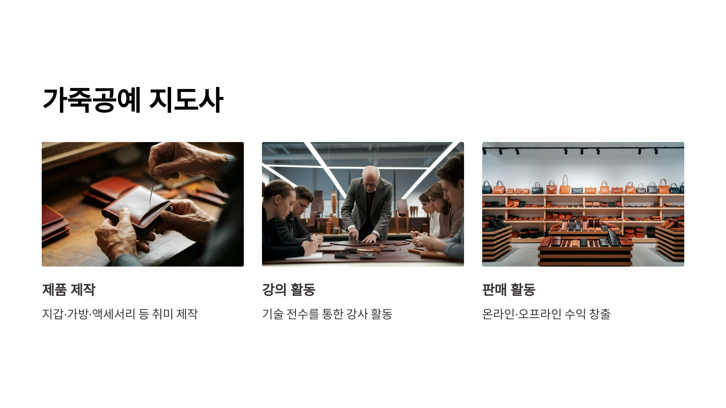 | 필요 기술 | 가죽 재단, 바느질, 디자인 감각 |