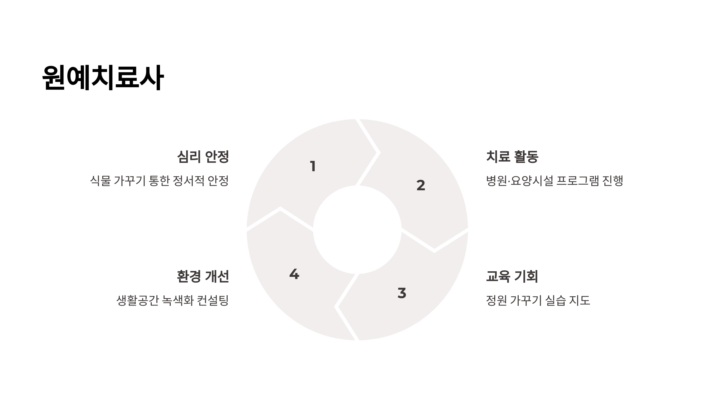 | 필요 기술 | 식물 관리, 심리치료 기법, 원예 지식 |