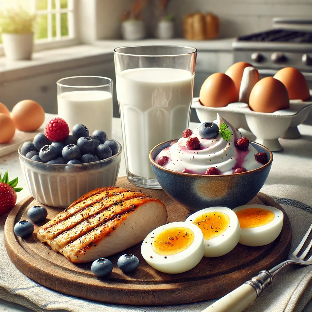 유제품: 우유, 요거트, 치즈 등은 단백질과 칼슘을 동시에 공급합니다.