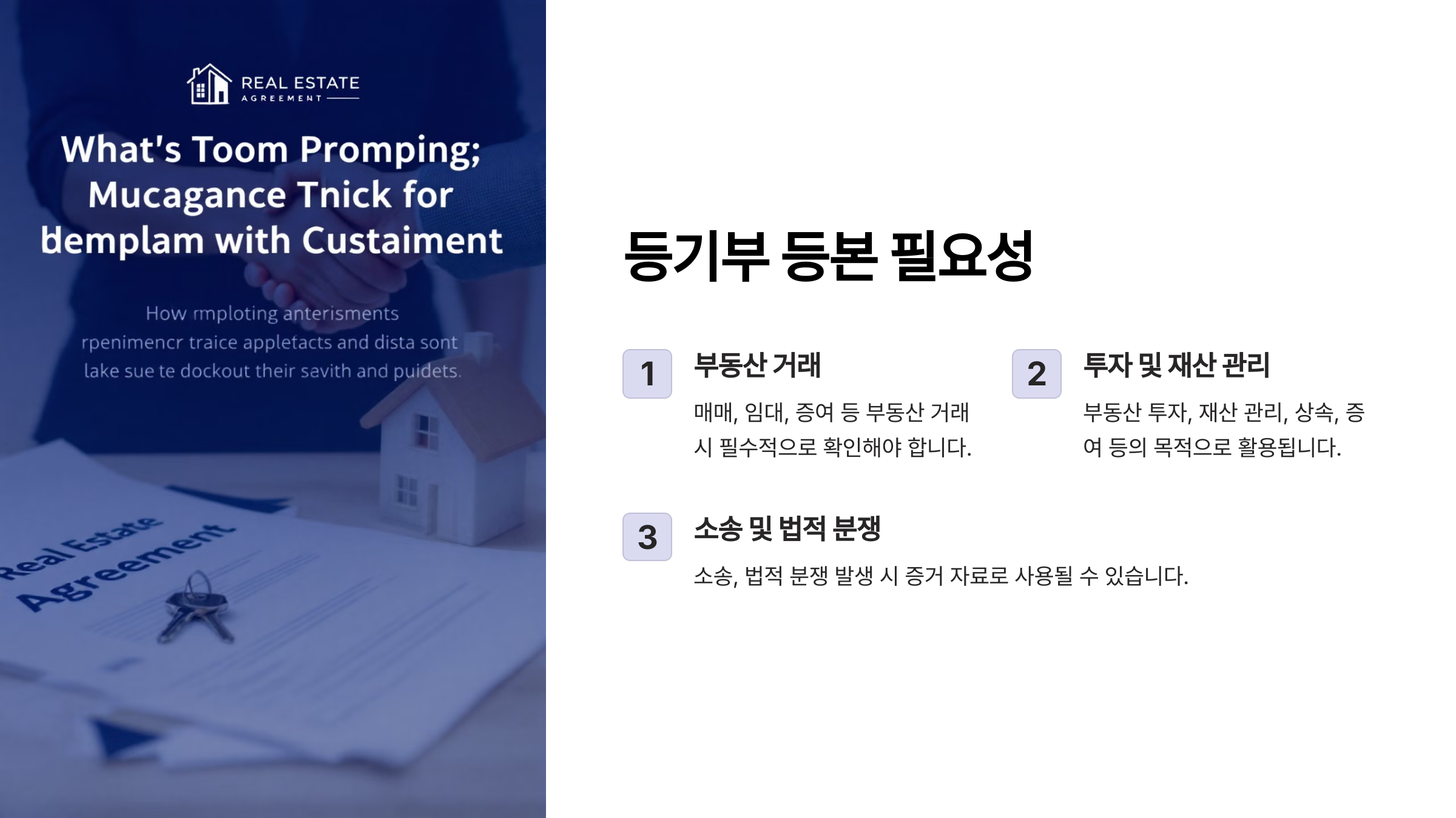 - 법적 분쟁 해결: 소유권 분쟁이나 강제집행 과정에서 중요한 증빙 자료로 사용됩니다.