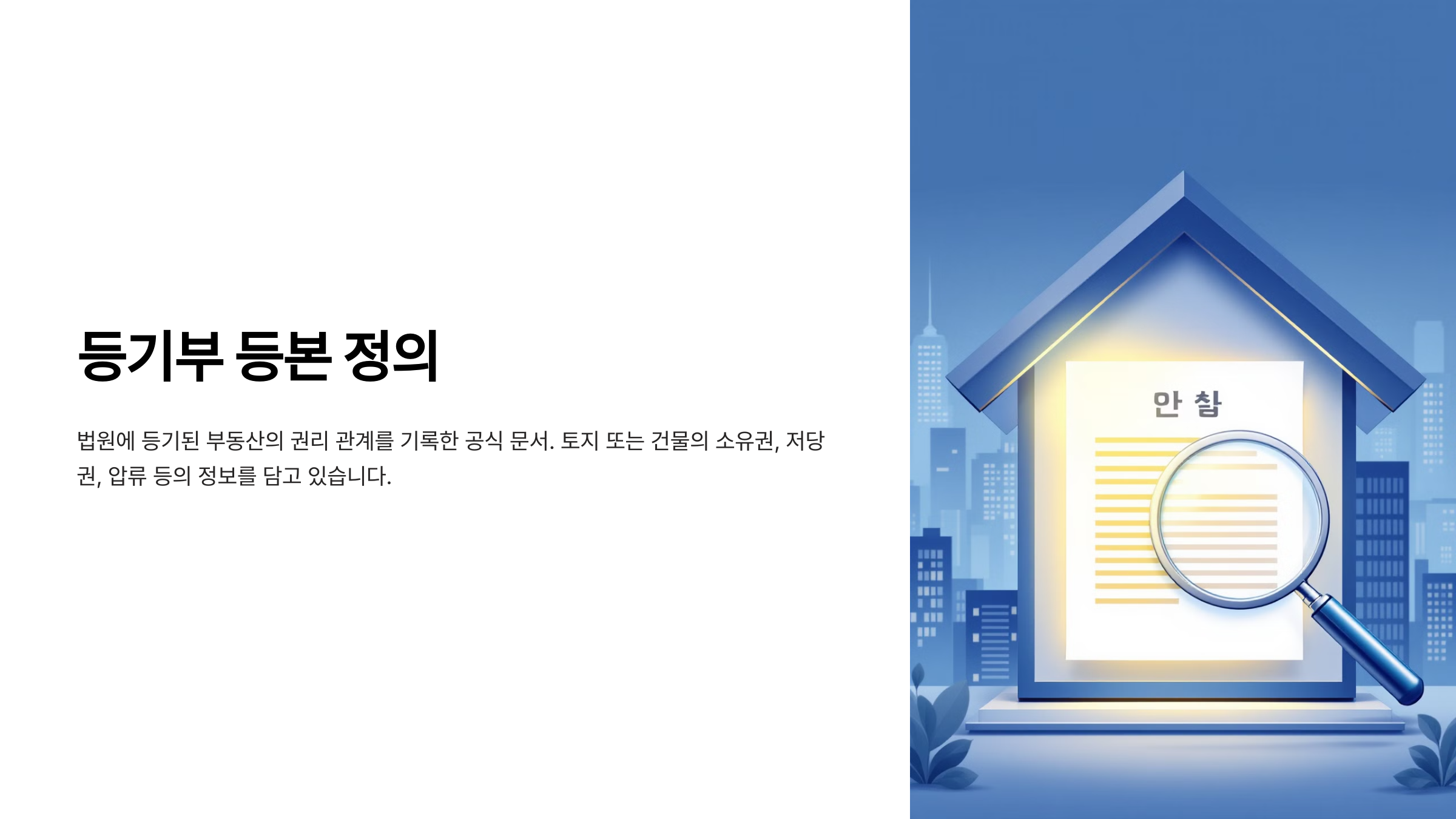 이 글에서는 등기부 등본의 정의, 발급 방법, 절차, 비용, 그리고 유의사항까지 상세히 안내하며,
