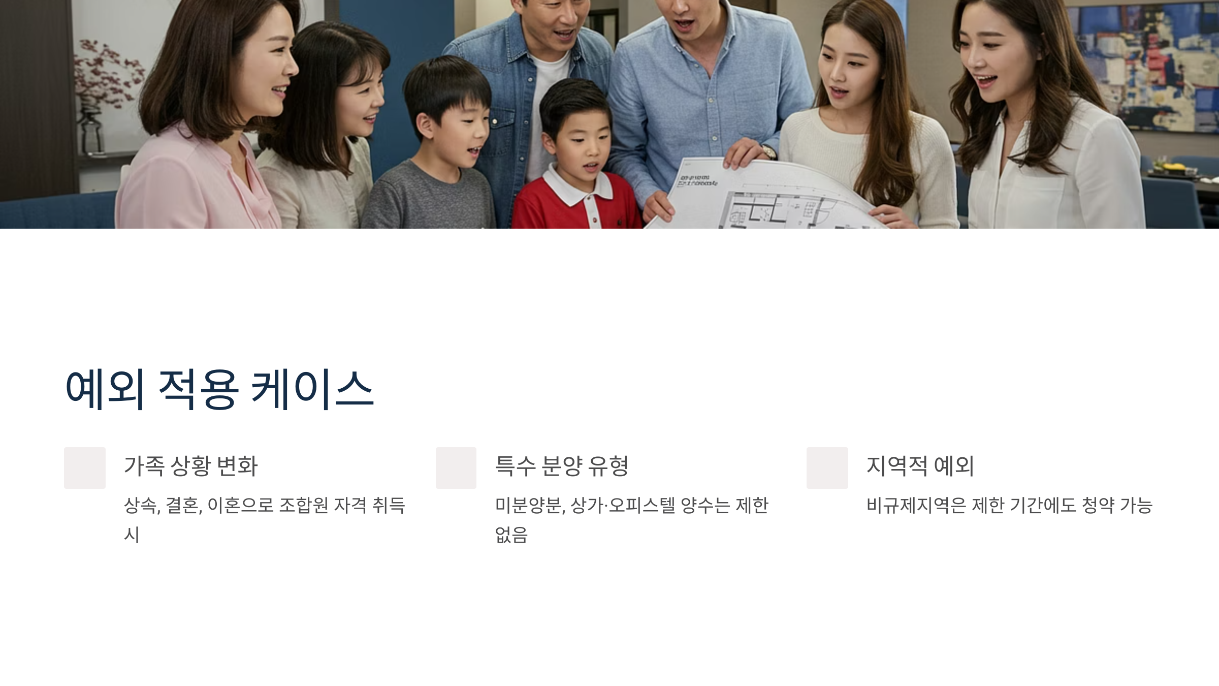 가족 관계 변동에 따른 예외도 있어요. 예를 들어 이혼이나 사별 등으로 세대구성이 변경된 경우, 기존의 재당첨 제한이 일부 완화될 수 있어요. 또한 자녀 출생으로 세대원 수가 증가한 경우에도 특별공급 자격이 새로 생기면서 무순위 청약과는 별도로 청약 기회를 얻을 수 있답니다. 이런 개인적 상황 변화는 청약 전략에 큰 영향을 미칠 수 있어요.