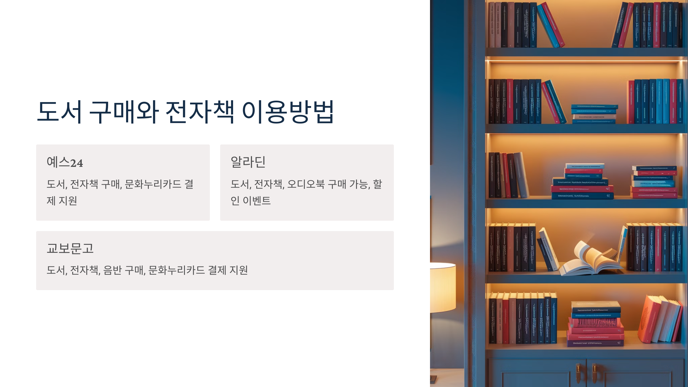 책을 좋아하는 분들에게 희소식! 📖 문화누리카드로 온라인 서점에서도 도서 및 전자책을 구매할 수 있어요.