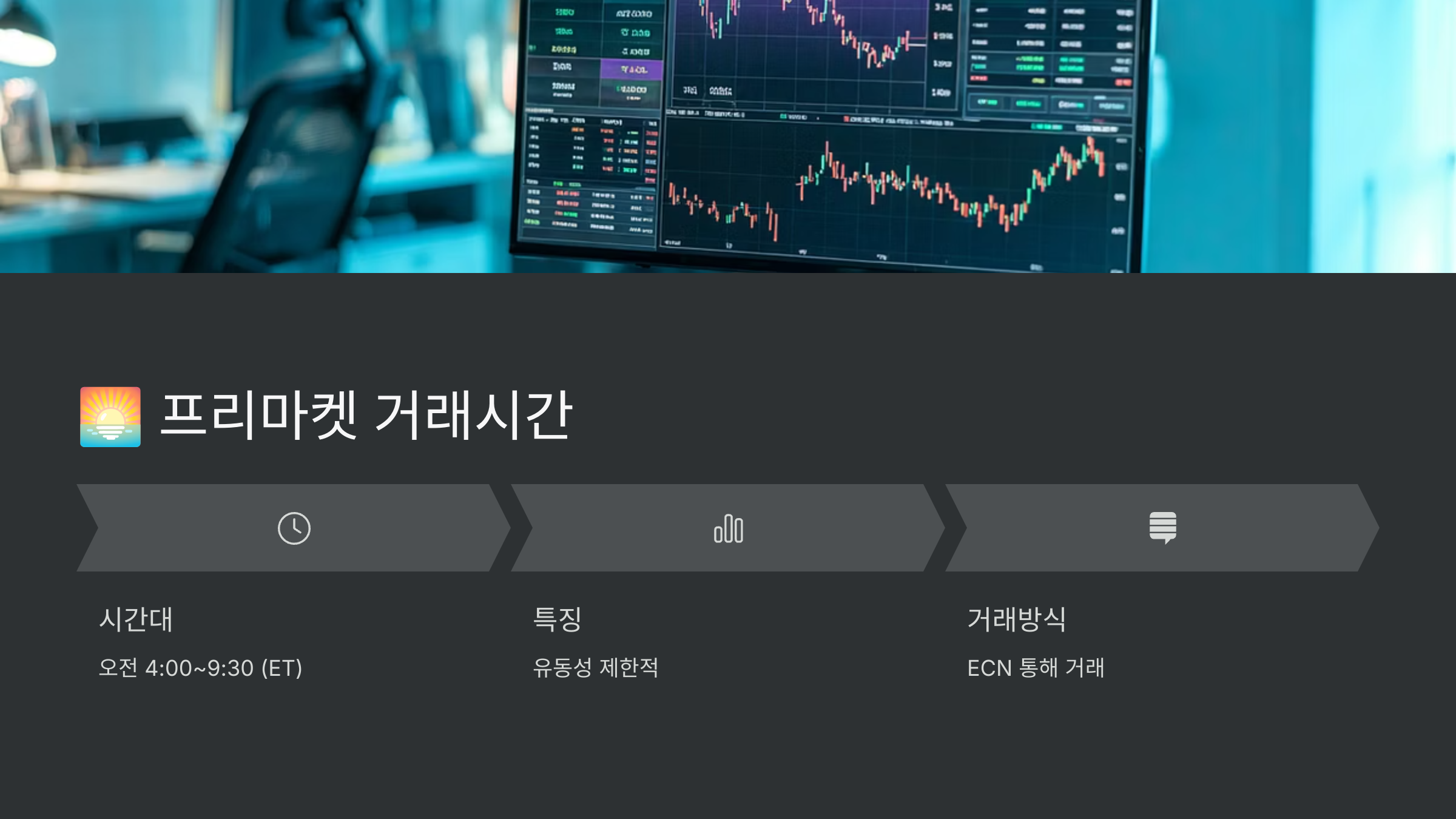 프리마켓은 정규장 이전에 열리는 시간대로, 미국 기준으로는 오전 4시부터 오전 9시 30분까지예요. 이 시간대는 일반 개인 투자자보다 기관이나 전문 투자자가 활발하게 움직이는 시장이에요.
