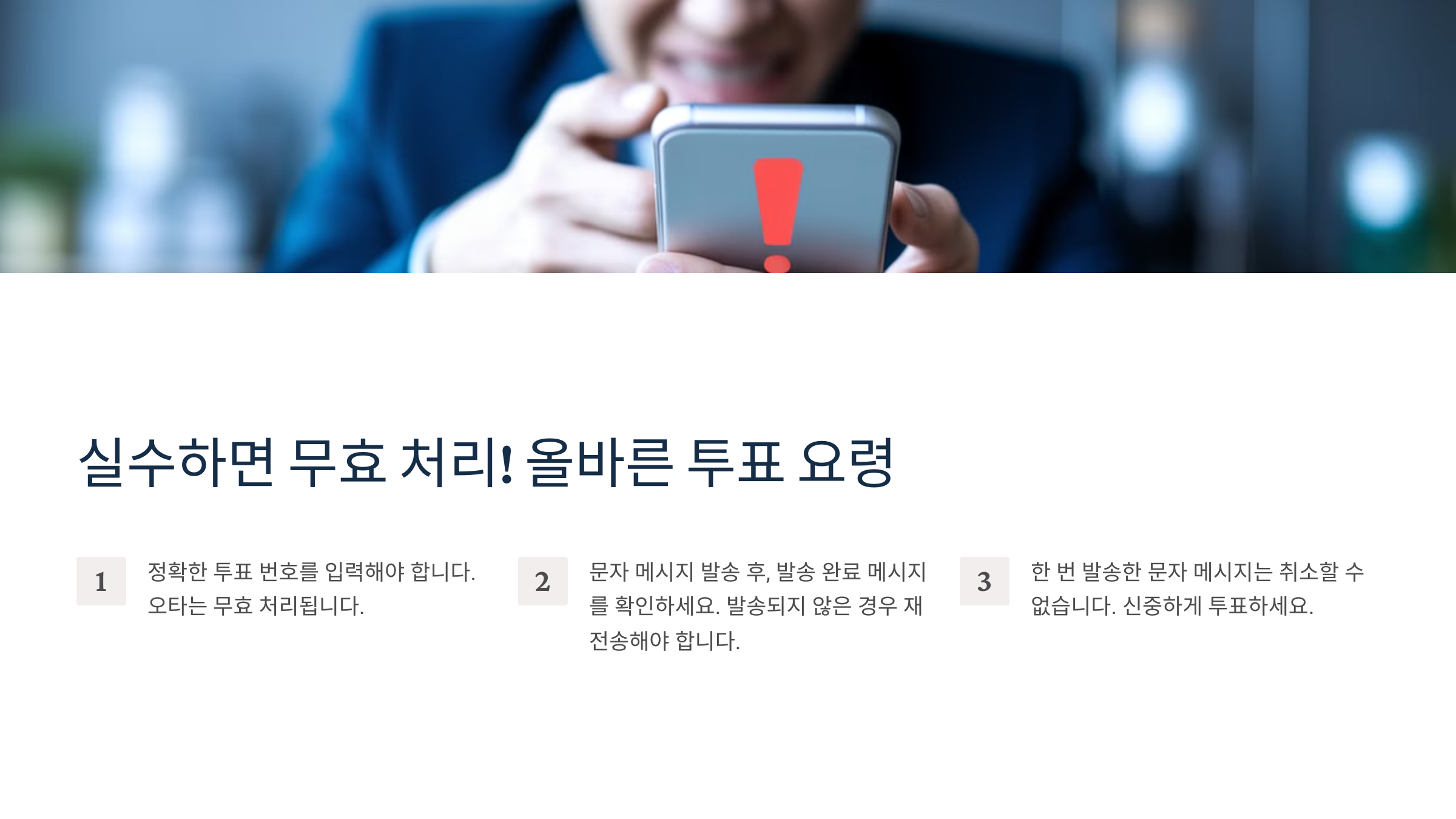 📢 문자 투표는 작은 실수로도 무효가 될 수 있어요! 올바른 형식을 꼭 확인한 후 보내세요. ✅