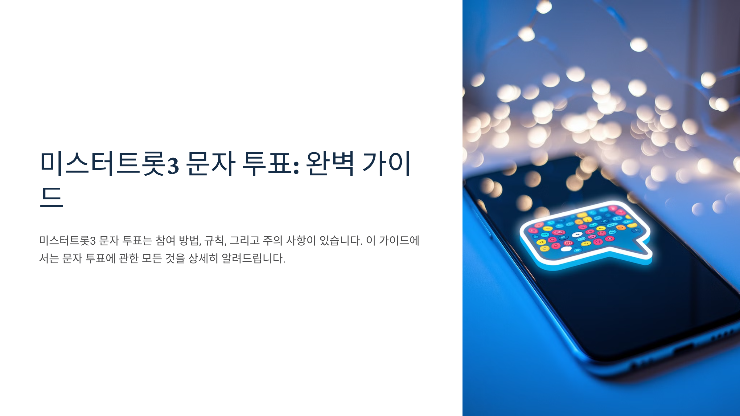 🎤 미스터트롯3의 우승자는 실시간 문자 투표로 결정될 만큼, 팬들의 한 표가 굉장히 중요한 역할을 해요. 단 1표 차이로 운명이 바뀔 수도 있기 때문에 정확한 방법으로 투표하는 게 중요해요.