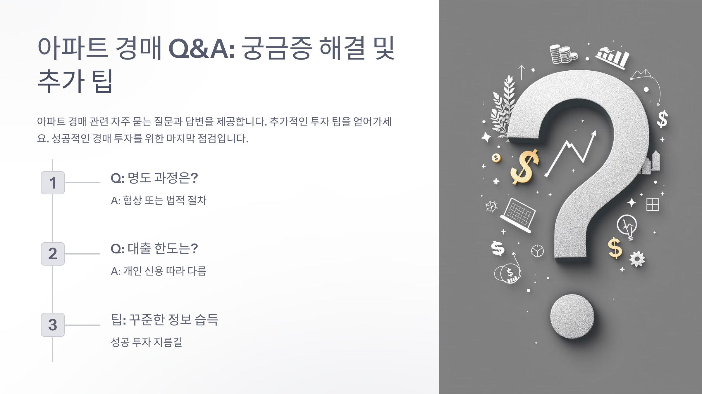또한, 낙찰 후 소유권 이전까지 걸리는 시간, 전세나 월세를 놓는 방법, 경매에서 실패를 줄이는 마인드셋까지 다룰 예정이에요. 마지막으로 자주 묻는 질문(FAQ)도 정리했으니 참고해 보세요. 😊