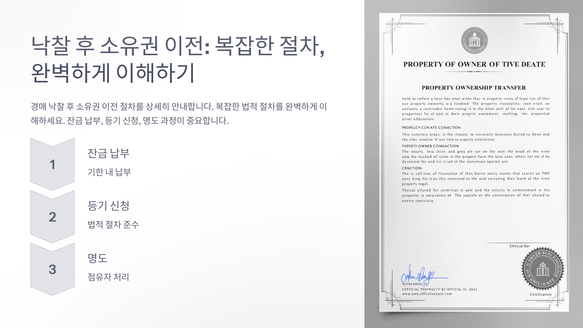 경매에서 낙찰을 받았다고 해서 바로 소유권이 이전되는 건 아니에요. 낙찰 후에는 일정한 절차를 거쳐야 정식으로 내 소유가 돼요. 📜