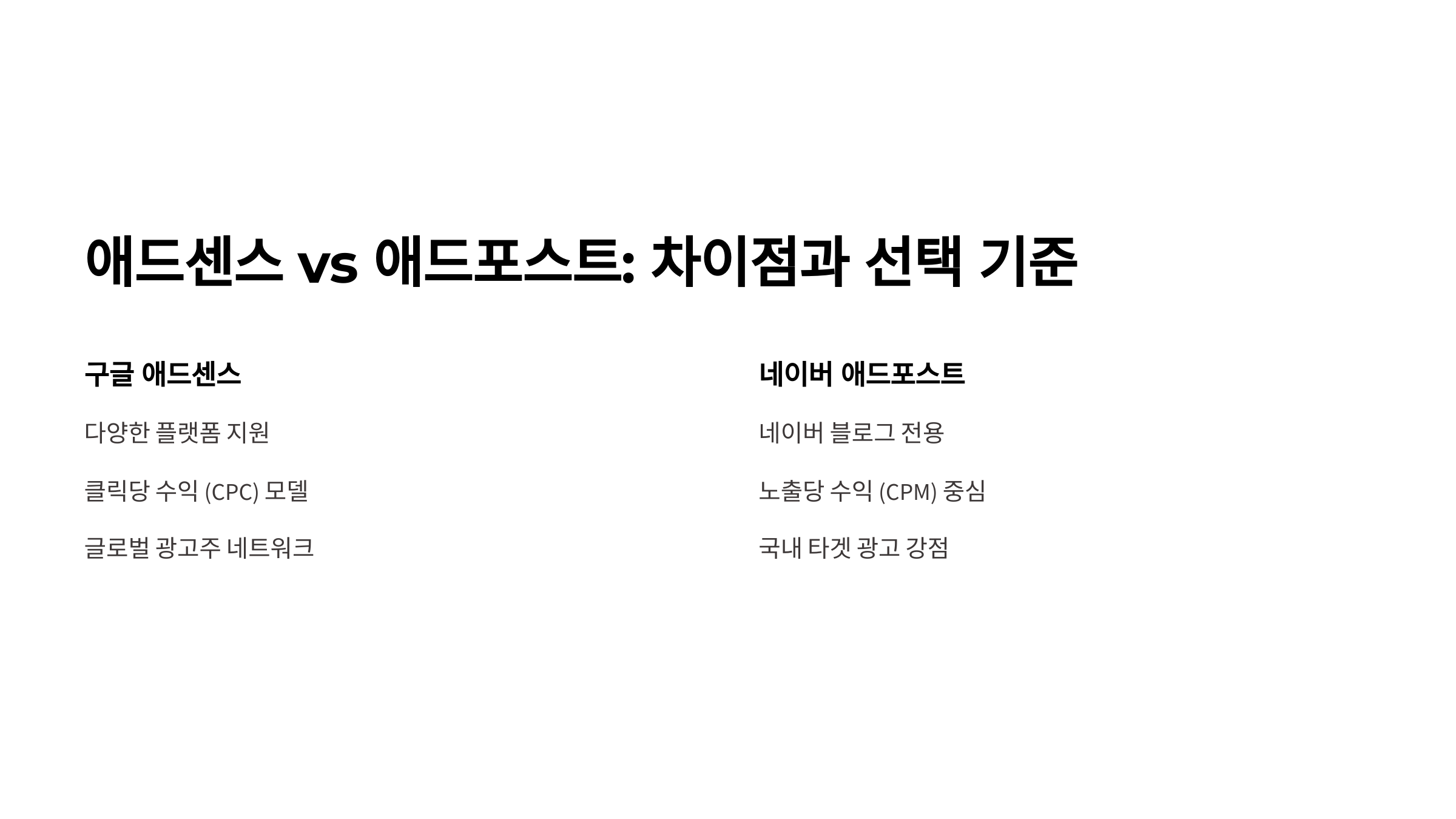 | 항목 | 구글 애드센스 | 네이버 애드포스트 |