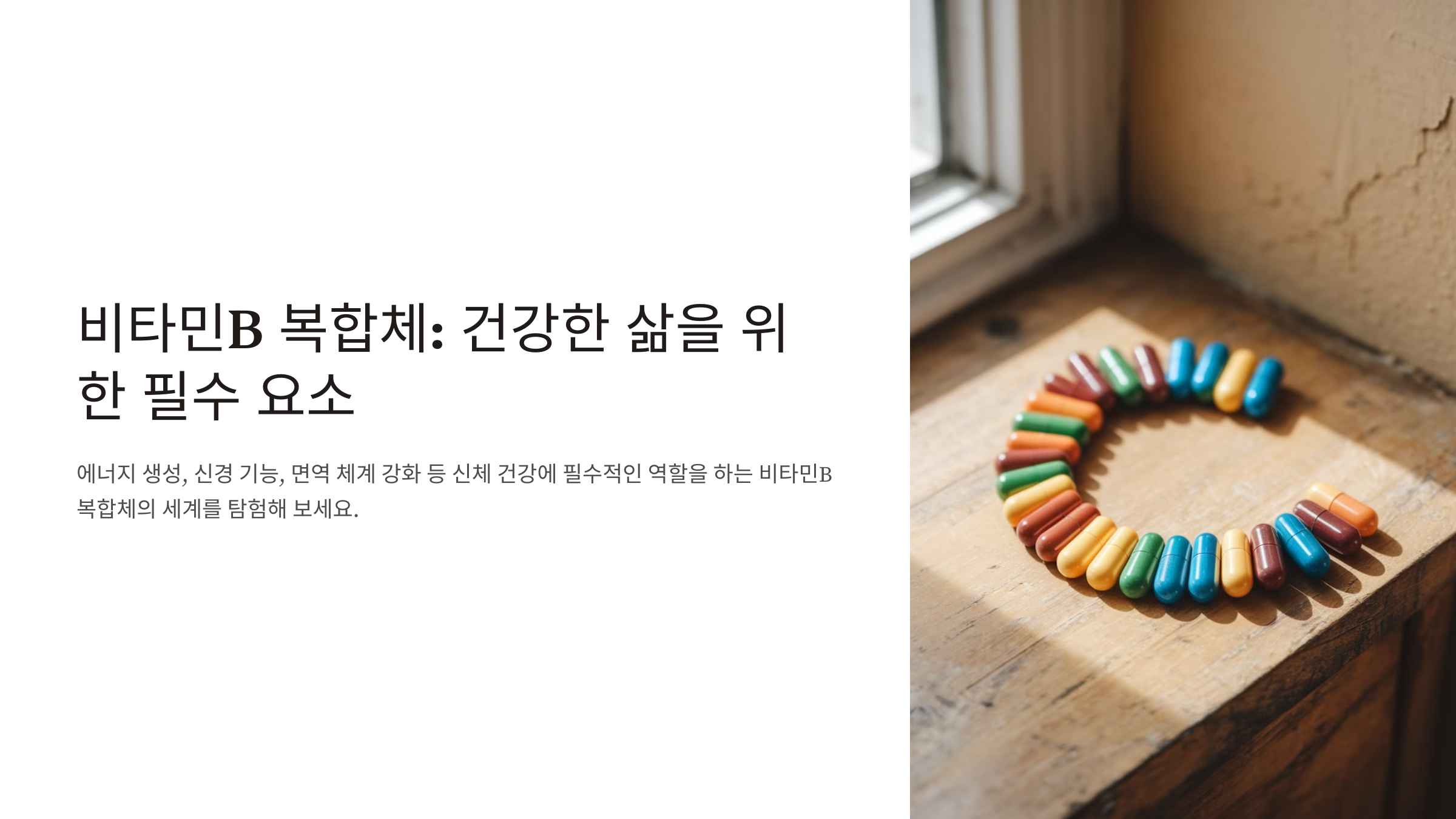 비타민B복합체는 우리 몸의 에너지 생성, 신경 기능, 피부 건강, 그리고 면역 체계 강화에 필수적인 역할을 하는 비타민군이에요. 이 비타민군은 서로 연관되어 작용하며, 주로 음식 또는 보충제를 통해 섭취할 수 있어요. 많은 현대인들이 불규칙한 식습관과 스트레스로 인해 비타민B 복합체가 부족해지기 쉬운데, 이를 보충하면 건강을 보다 효과적으로 관리할 수 있답니다.