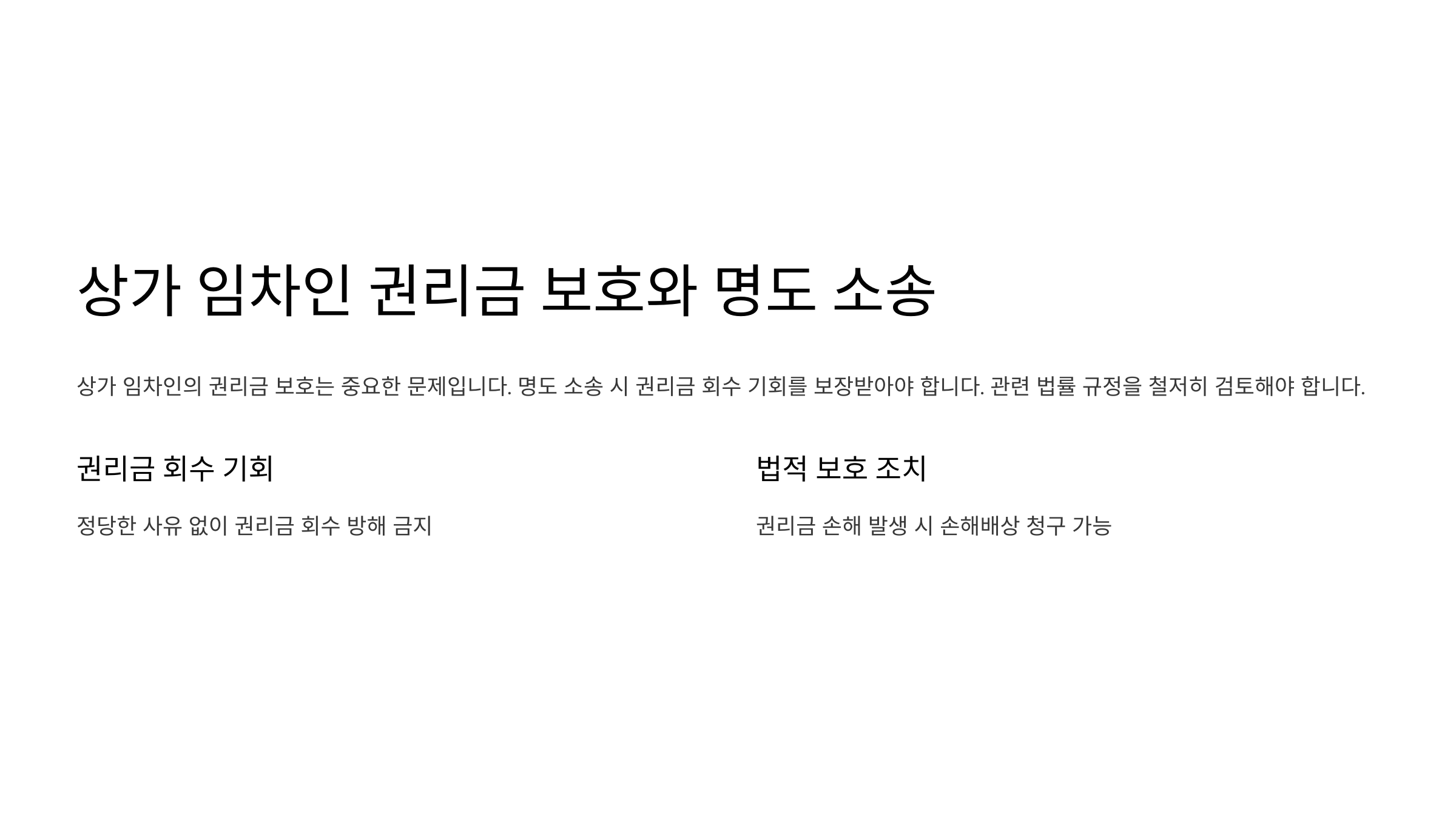 상가 임차인은 계약이 끝나더라도 권리금을 보호받을 권리가 있어요. 즉, 건물주가 명도 소송을 통해 강제 퇴거를 진행하려 해도 권리금 문제를 해결하지 않으면 법적 분쟁이 길어질 수 있어요.