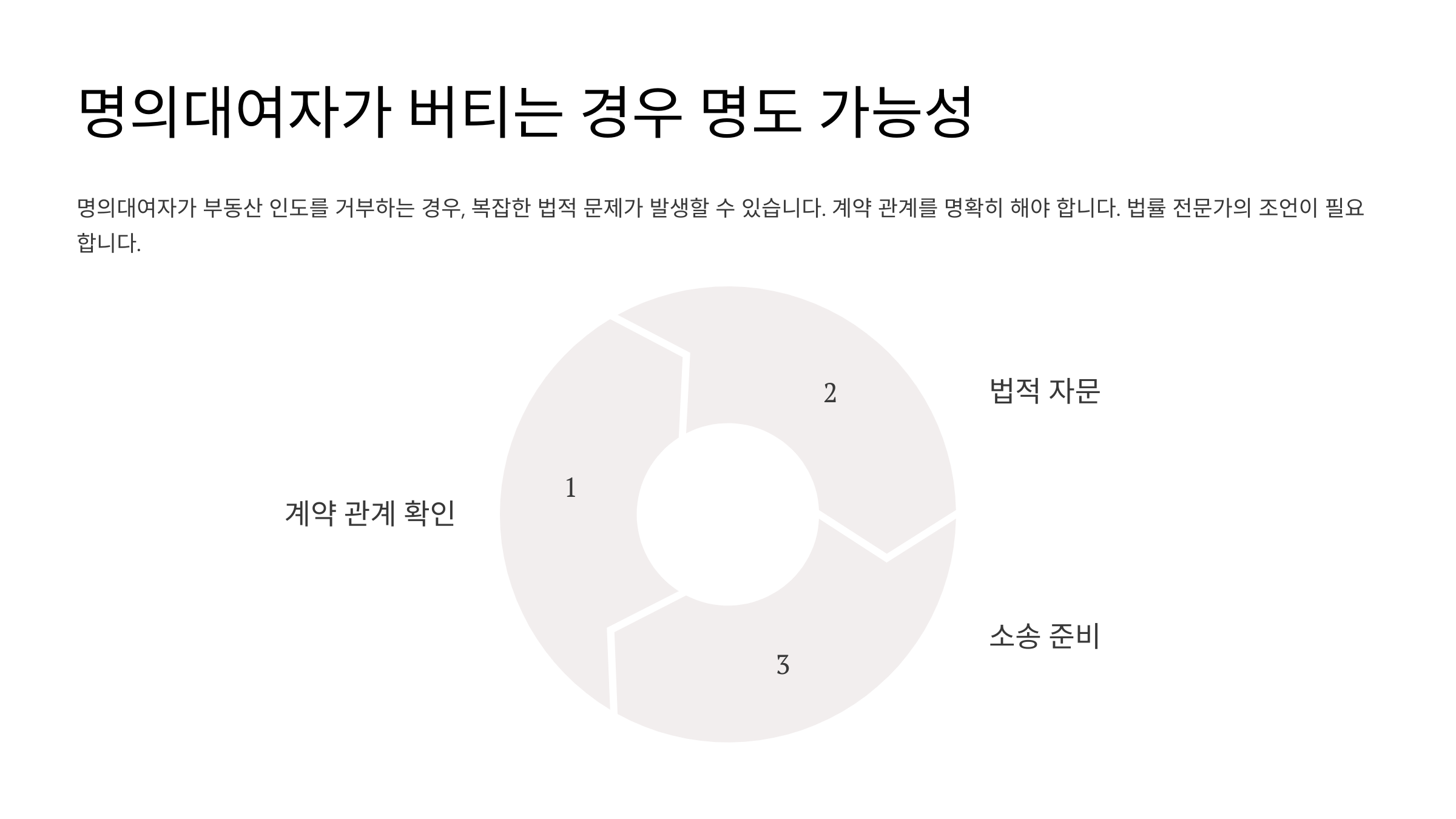 명의대여자가 버티더라도 법적 절차를 잘 따르면 명도 소송을 진행할 수 있어요. 하지만 계약서상 문제가 있다면 소송이 길어질 수 있으므로 사전에 철저한 법적 검토가 필요해요! ⚖️