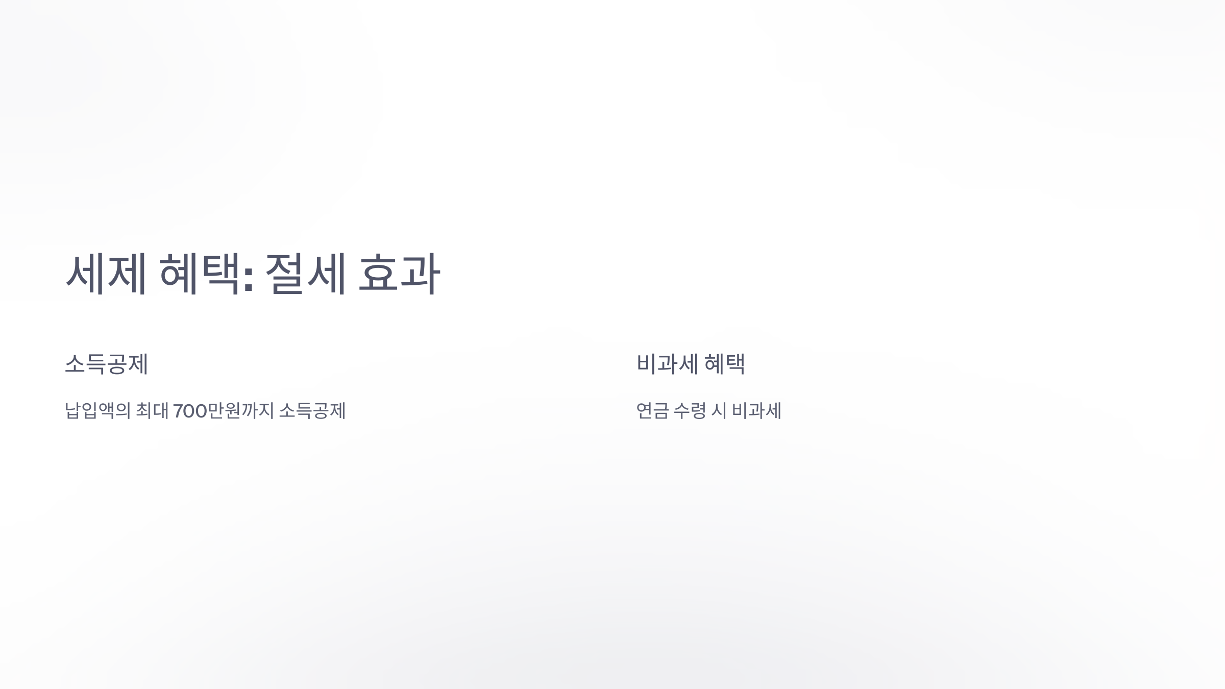 하지만, 연금을 수령할 때는 기타소득세가 부과될 수 있다는 점을 기억하세요. 이 점을 감안하더라도, 세제 혜택을 통해 현재의 세금 부담을 줄이는 효과는 매우 크답니다.