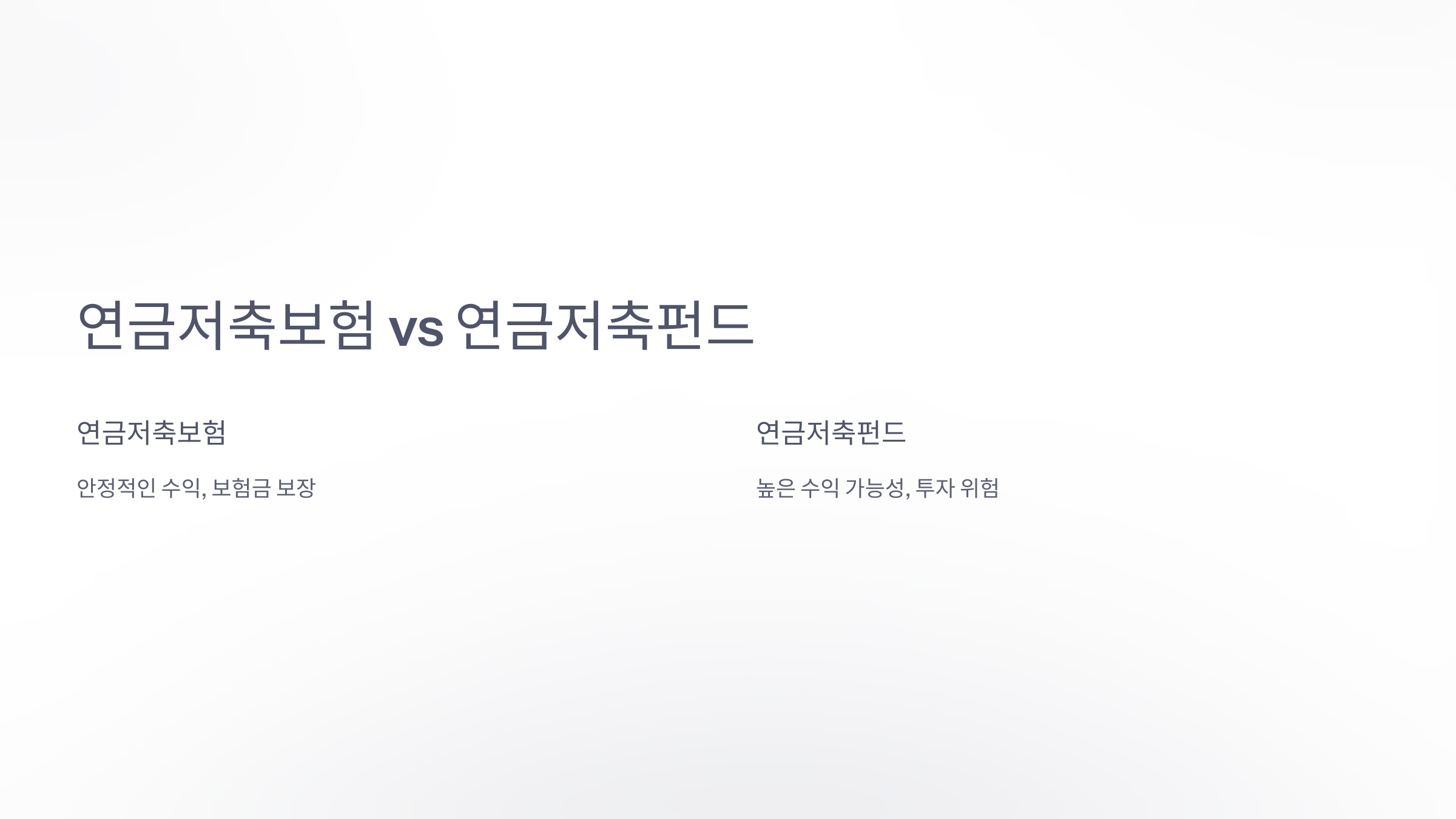 이 표를 참고해 자신에게 적합한 상품을 선택해 보세요. 안정성을 원한다면 연금저축보험, 높은 수익을 기대한다면 연금저축펀드를 선택하는 것이 좋아요.