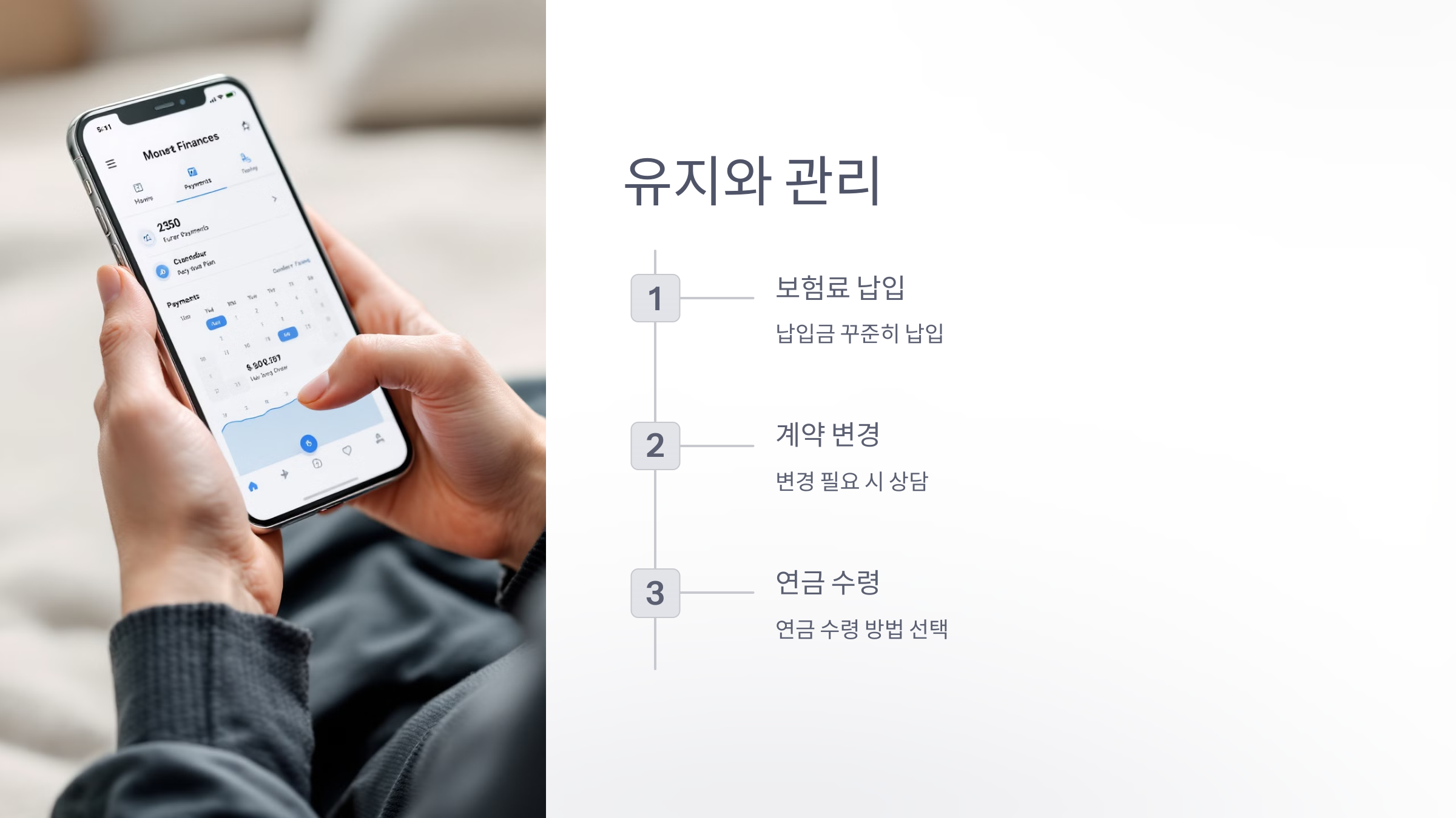 연금저축보험은 가입 후 꾸준히 관리하는 것이 중요해요. 먼저, 정기적으로 납입 스케줄을 확인하고 계획적으로 보험료를 납부하세요. 납입 기간을 놓치지 않으면 계약이 중단되는 상황을 방지할 수 있어요.