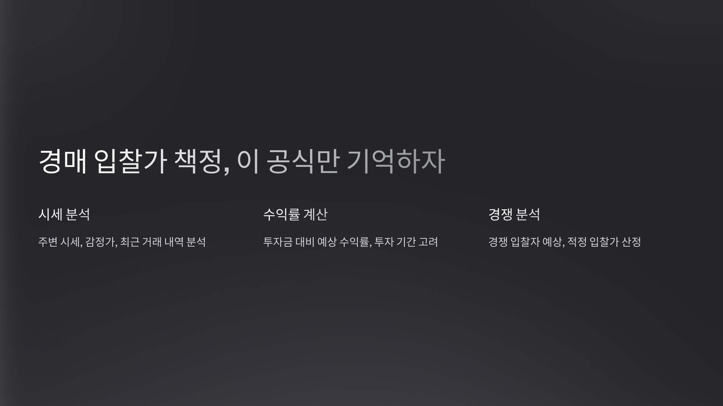 실제로 입찰가를 정할 때는 아래 3가지를 반드시 고려해야 해요.