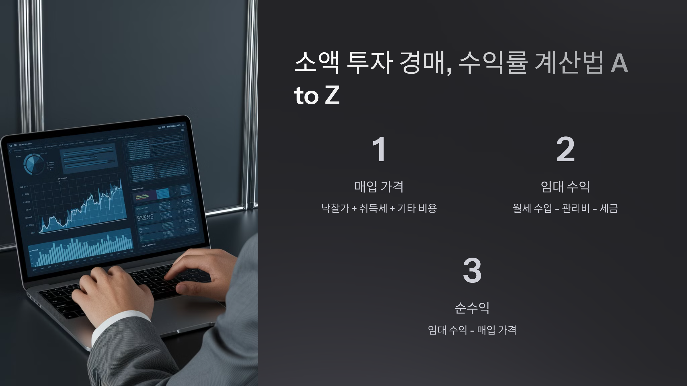 경매 투자의 핵심은 결국 "수익"이에요. 수익이 나지 않는 투자는 아무 의미가 없죠. 그래서 소액 경매 투자에서는 수익률을 꼼꼼하게 따져봐야 해요.