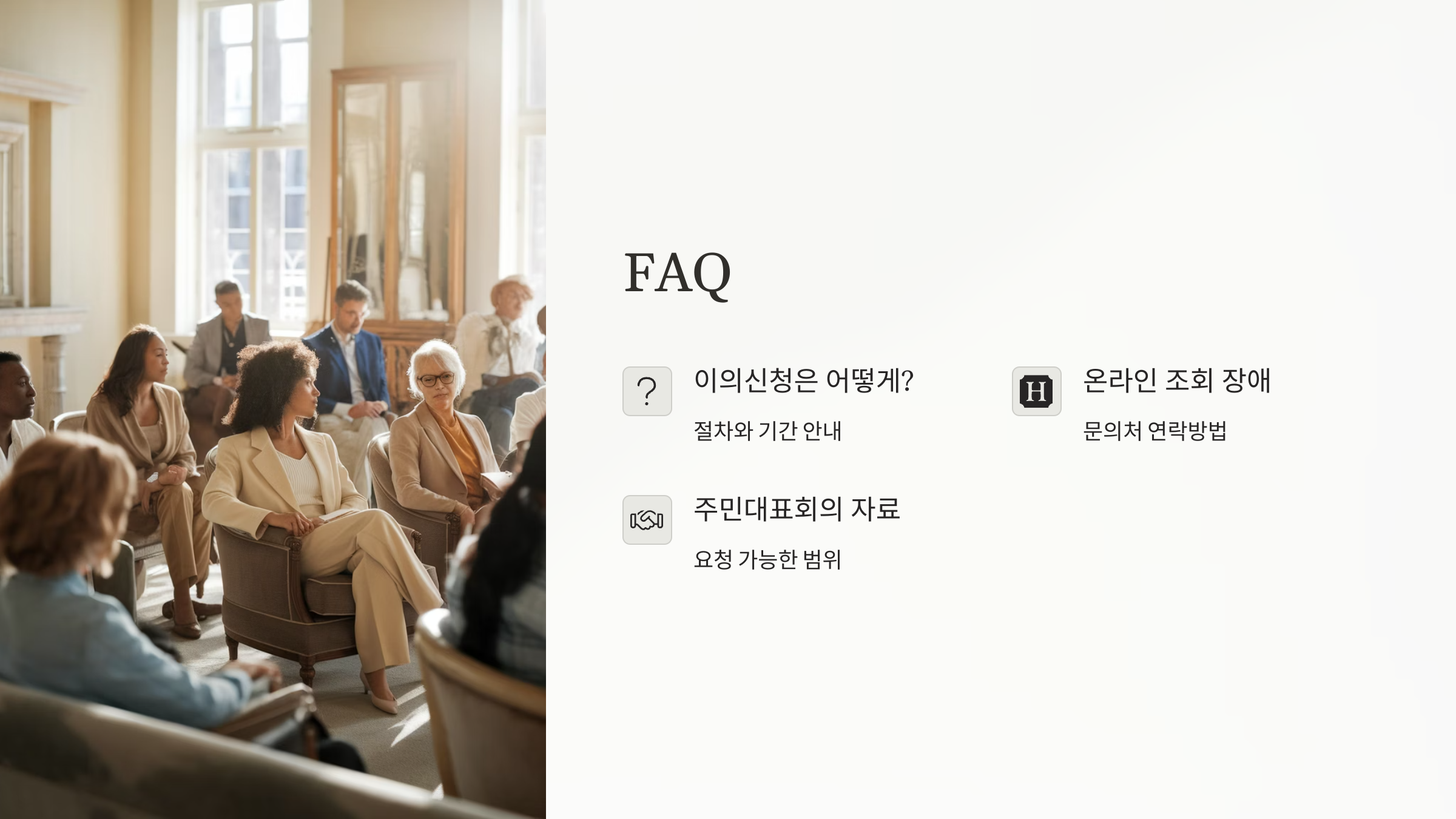 A7. 입주자대표회의 또는 지자체 주택과에 민원 접수가 가능해요.