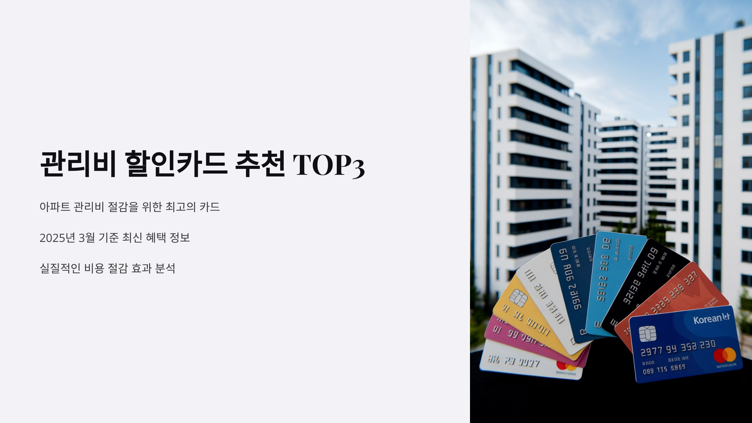 수많은 카드 중에서 어떤 카드가 관리비 절약에 가장 도움이 될까요? 여기서 소개하는 카드 3종은 실제 할인율도 높고, 사용성도 좋아서 많은 분들이 사용하고 있는 카드들이에요! 💡