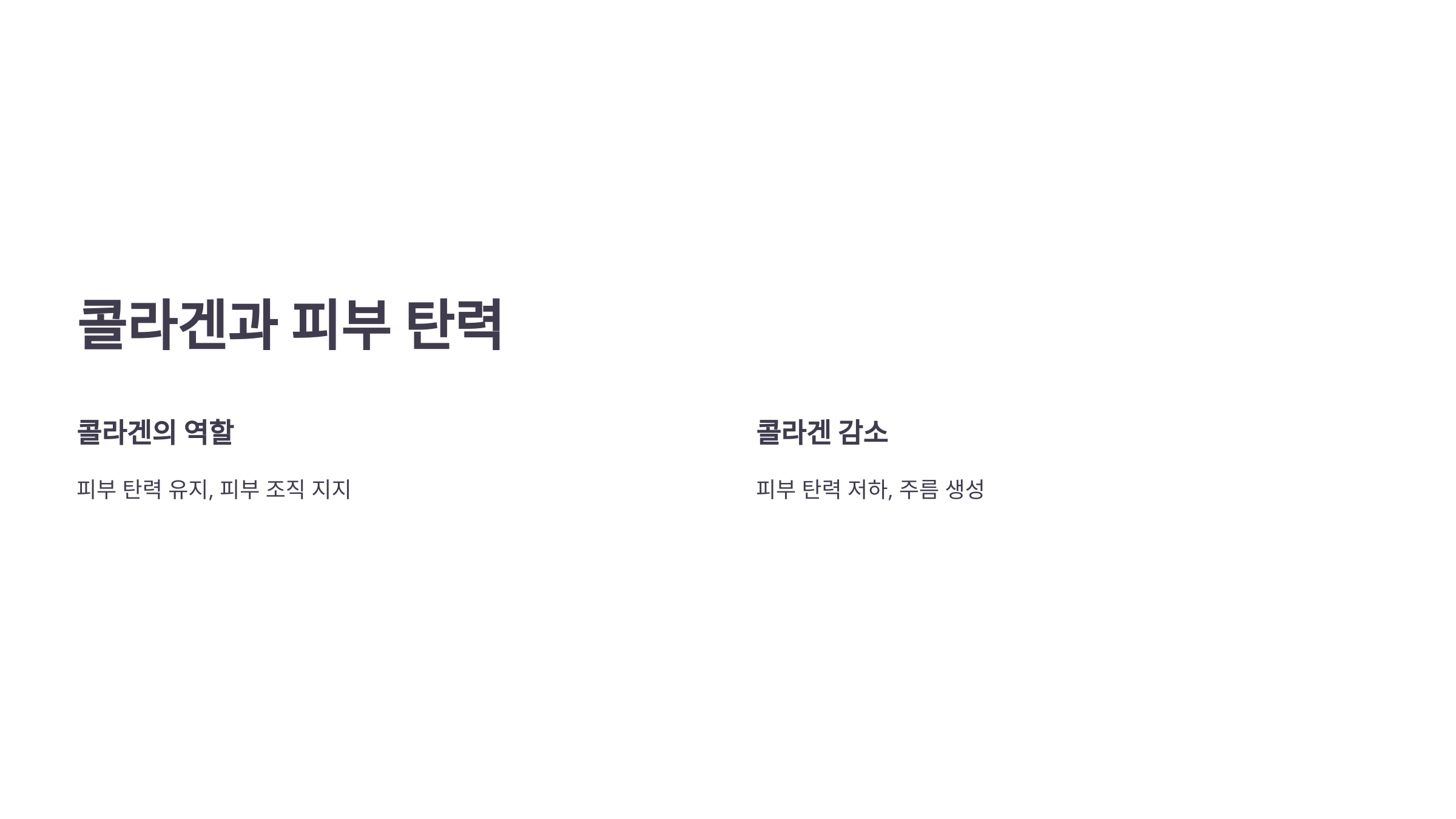 콜라겐이 부족해지면 피부가 얇아지고 주름이 쉽게 생기며 탄력을 잃게 돼요. 이 때문에 콜라겐을 보충하는 것은 건강하고 어려 보이는 피부를 유지하는 데 중요한 요소예요. 특히, 최근에는 먹는 콜라겐 보충제가 피부 개선에 효과가 있다는 연구 결과도 많이 나오고 있어요.