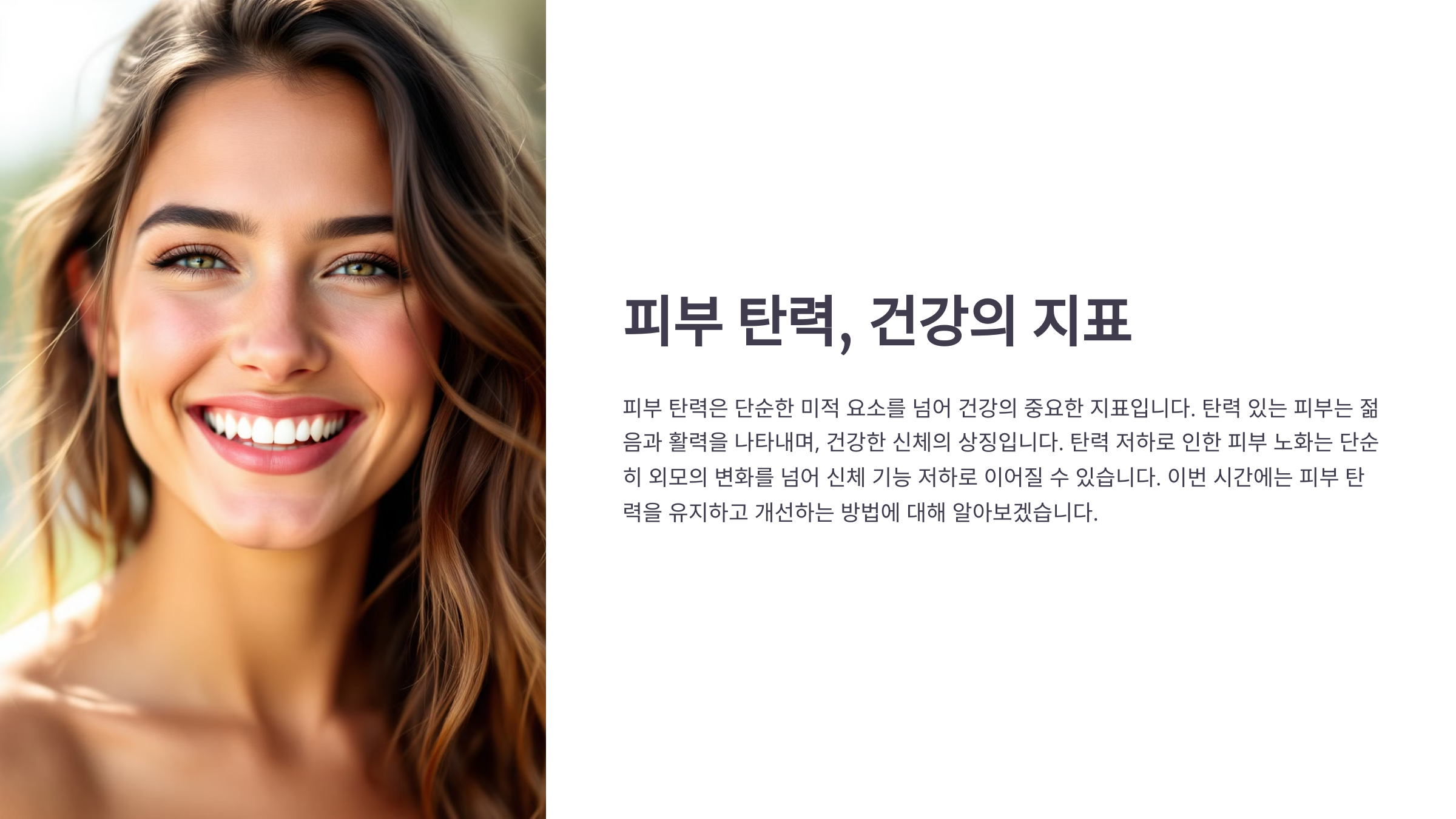 탄력 있는 피부는 단순히 나이가 어려 보이는 것 이상의 가치를 가져요. 건강한 피부는 신체의 전반적인 상태를 반영하며, 자신감과도 연결되어 있답니다. 그러니 피부 관리에 조금 더 신경을 써 보는 건 어떨까요?