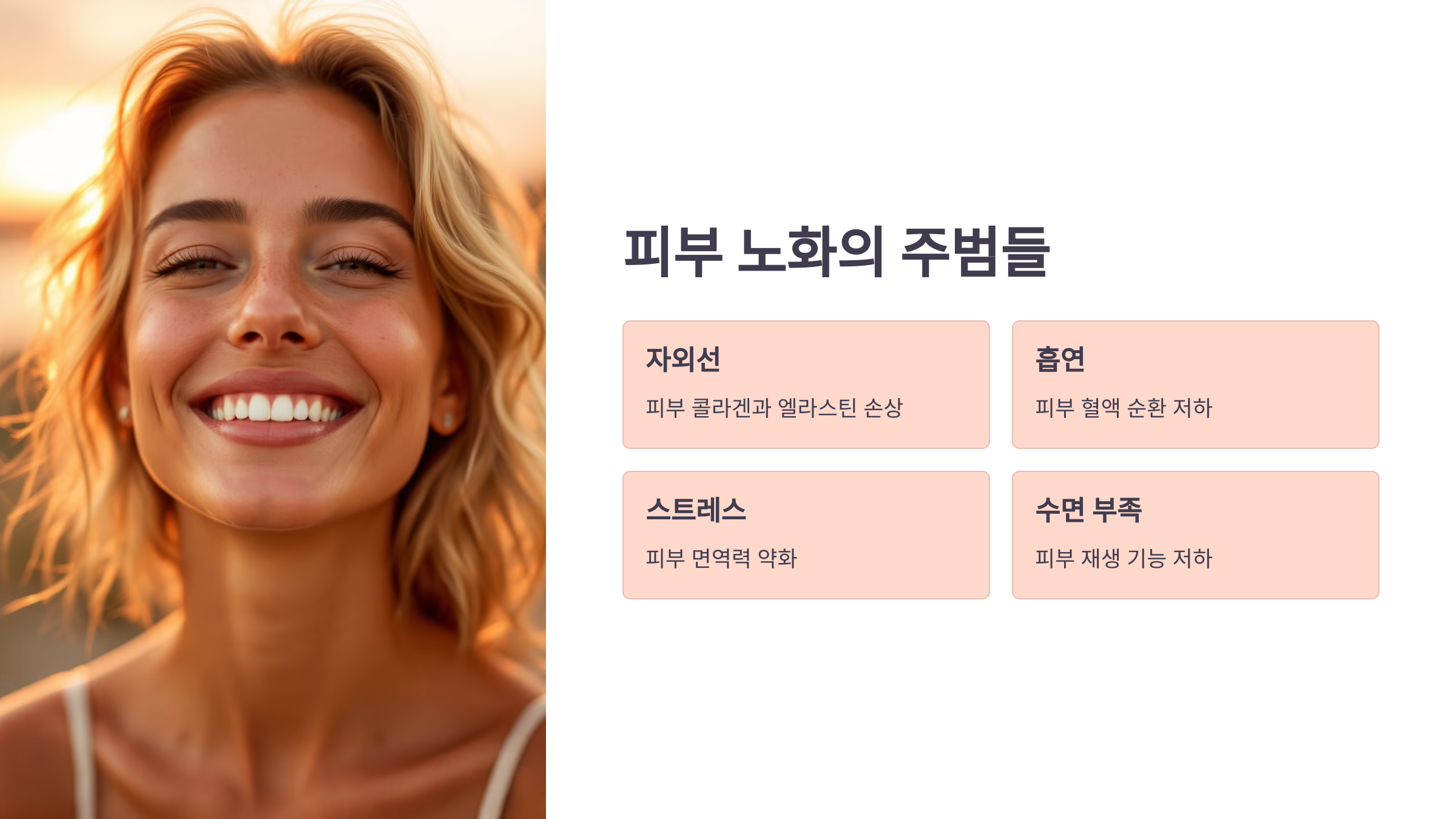 피부 노화를 가속화시키는 요소들은 생각보다 다양해요. 대표적으로 자외선(UV) 노출, 흡연, 스트레스, 불규칙한 수면, 그리고 잘못된 식습관 등이 있어요. 이런 요소들은 피부의 콜라겐과 엘라스틴을 파괴하거나 생산을 저해해 피부를 더욱 나이 들어 보이게 만들죠.