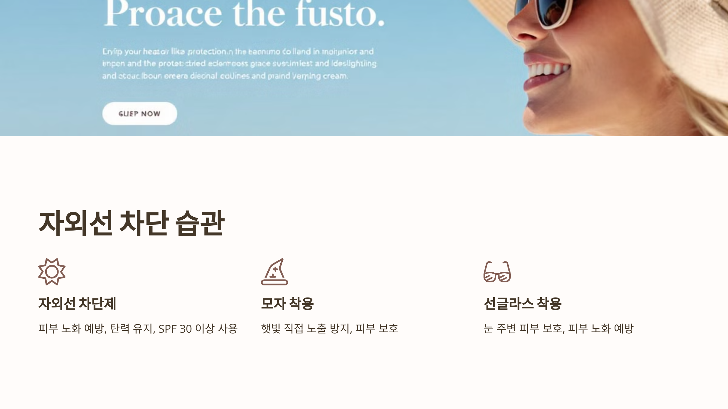A1. 충분한 수면과 자외선 차단이 가장 중요한 기본 습관이에요. 더불어 수분과 영양을 꾸준히 공급하는 것도 필수랍니다.