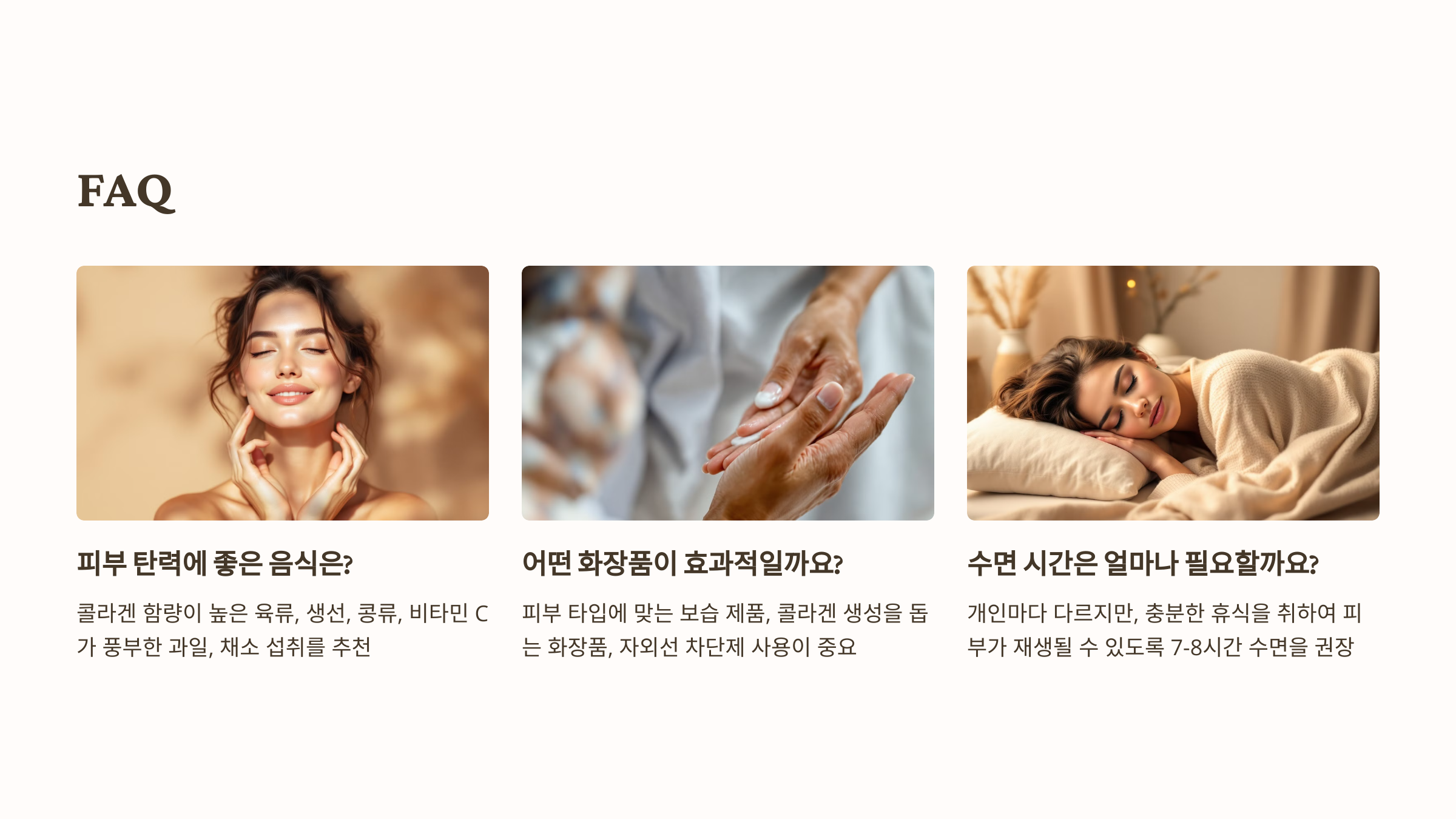 피부의 탄력은 콜라겐과 엘라스틴이라는 단백질에 의해 유지돼요. 나이가 들수록 이 단백질의 생성이 감소하면서 피부가 점점 얇아지고 힘을 잃게 돼요. 이를 예방하려면 꾸준히 좋은 습관을 실천하고 관리해야 해요.