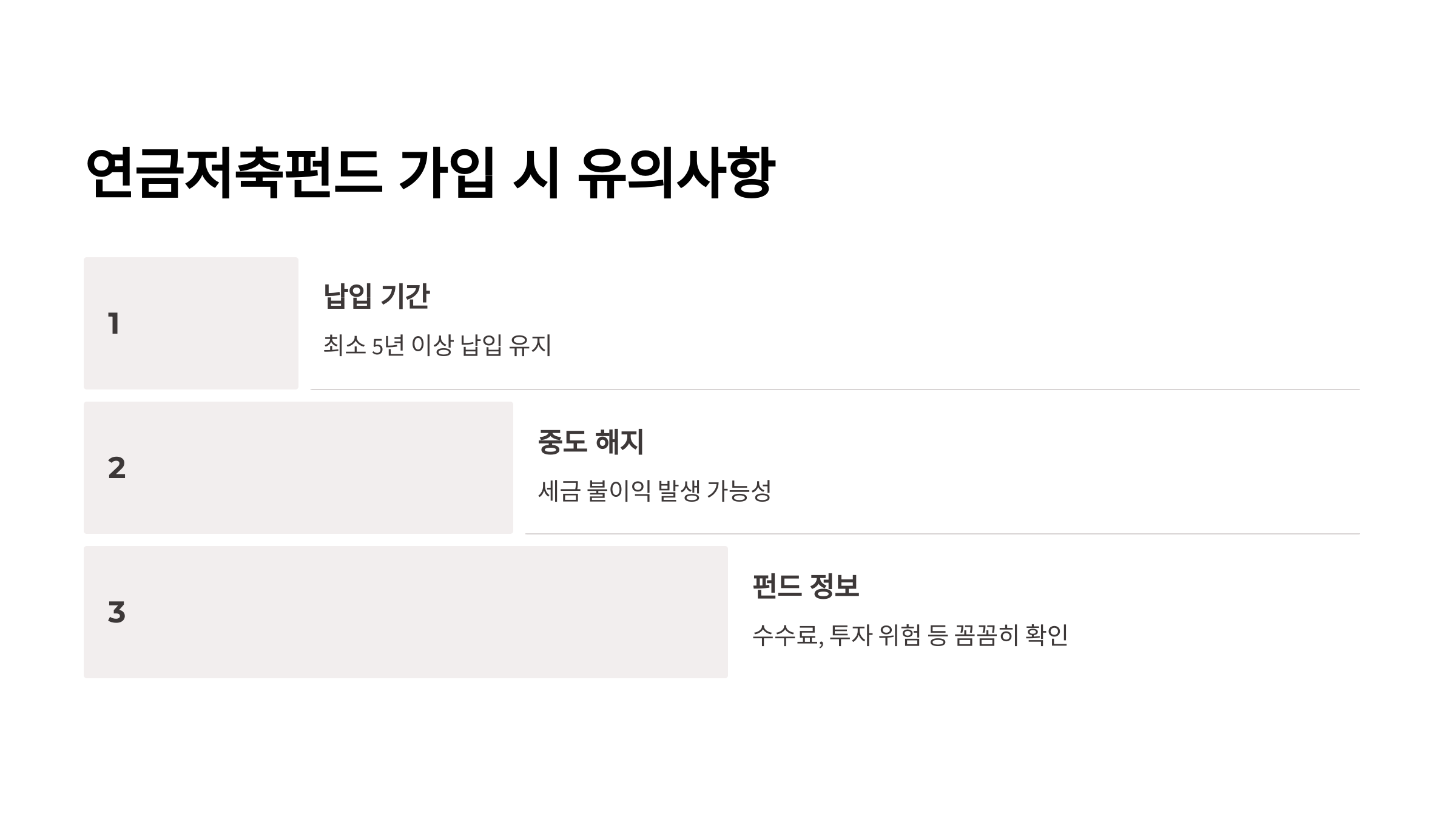 🔍 연금저축펀드는 장기 투자 상품이므로 가입 전에 몇 가지 중요한 사항을 꼭 확인해야 해요.