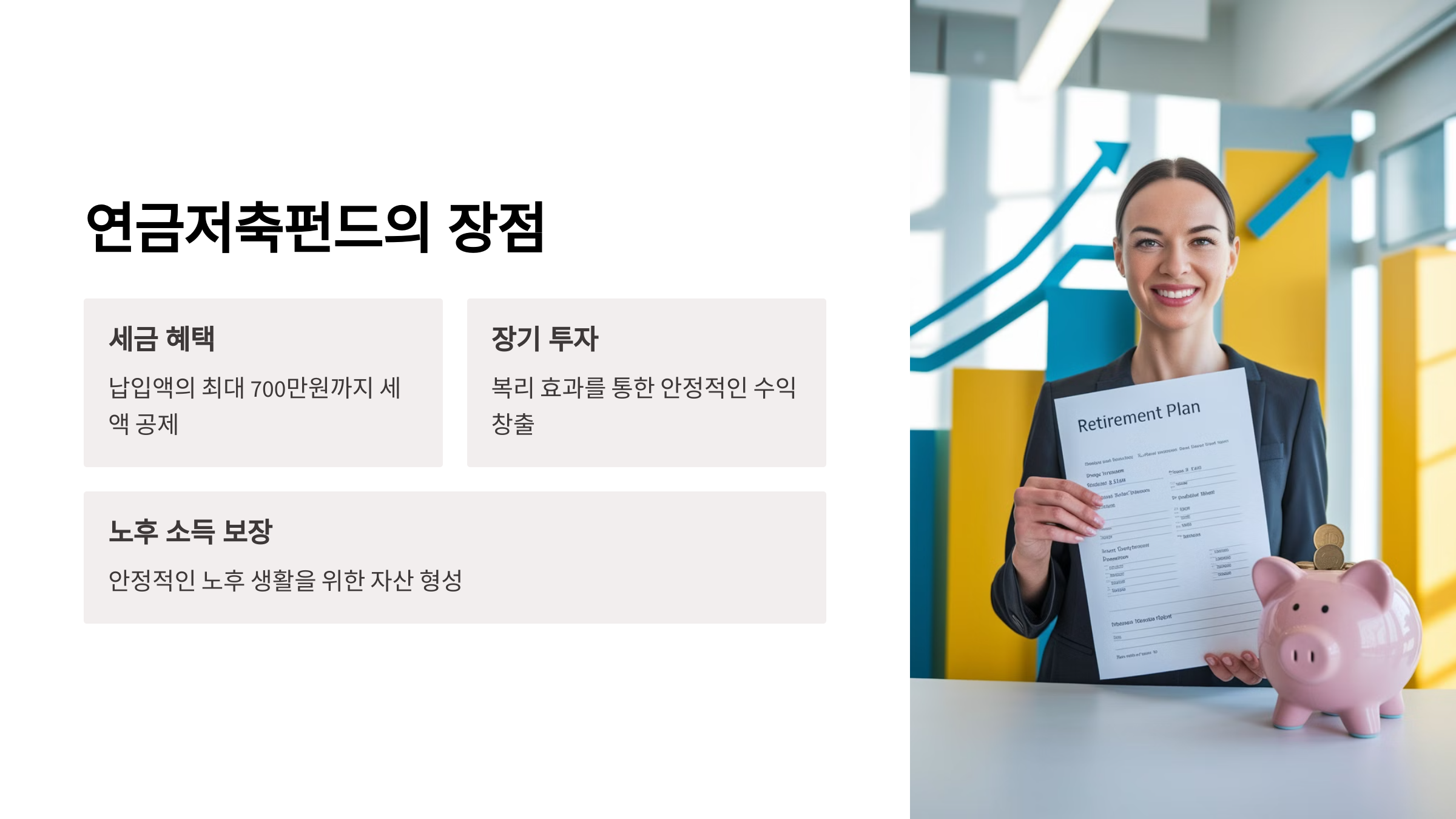 📢 연금저축펀드는 다양한 장점이 있어요. 대표적인 혜택을 살펴볼까요?
