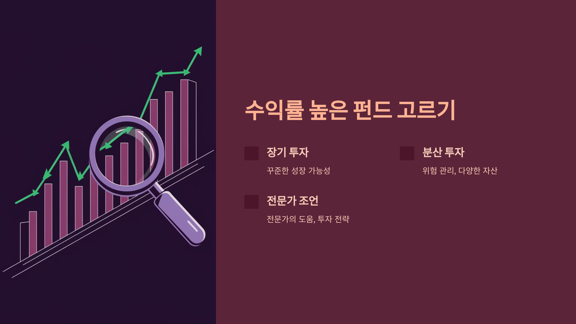 | 투자 방식 | 고정 금리 적용 (원금 보장) | 펀드 직접 투자 (변동 수익) |