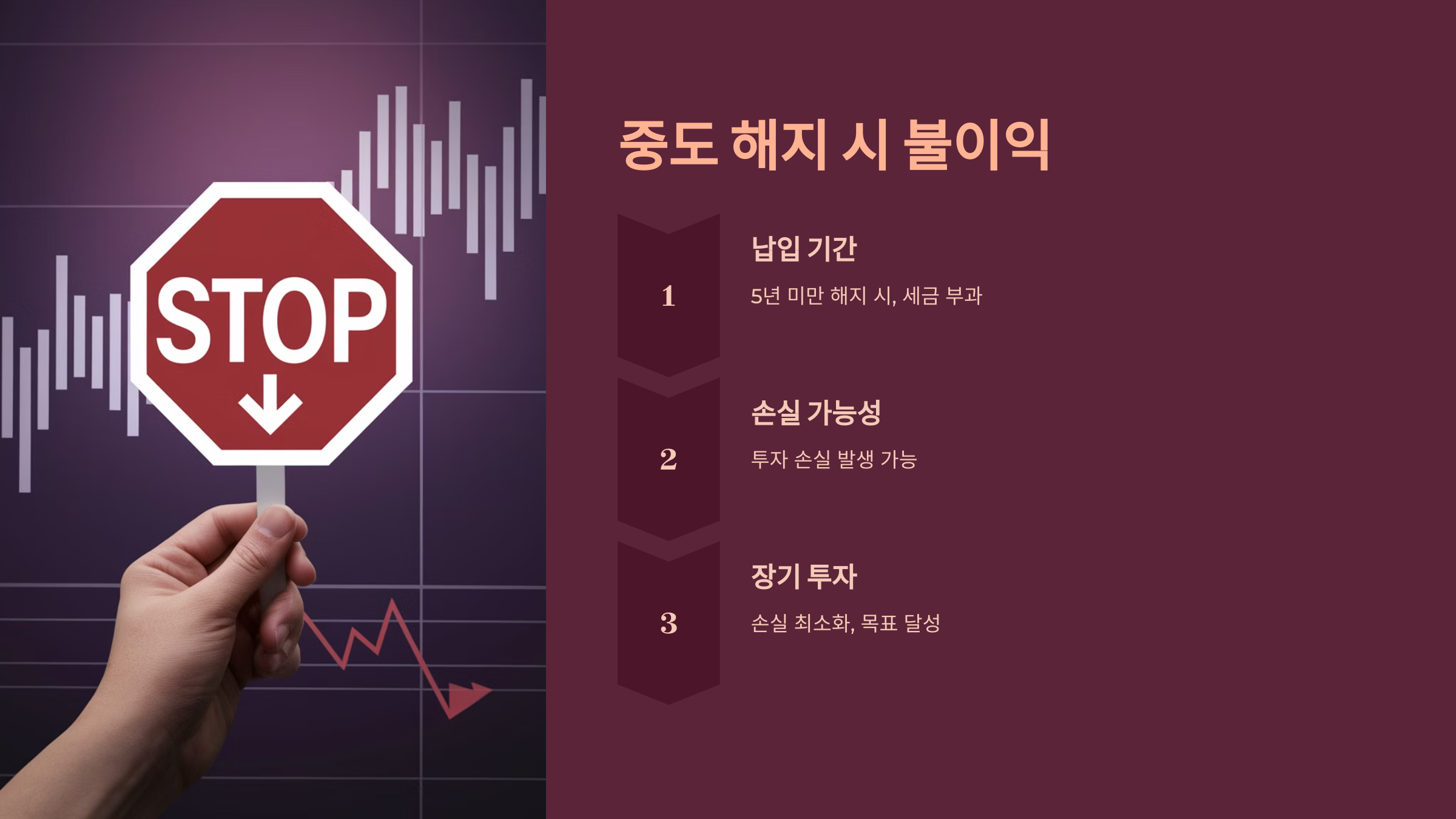 | 중도 해지 | 환급금 손실 발생 | 세금 및 손실 발생 가능 |